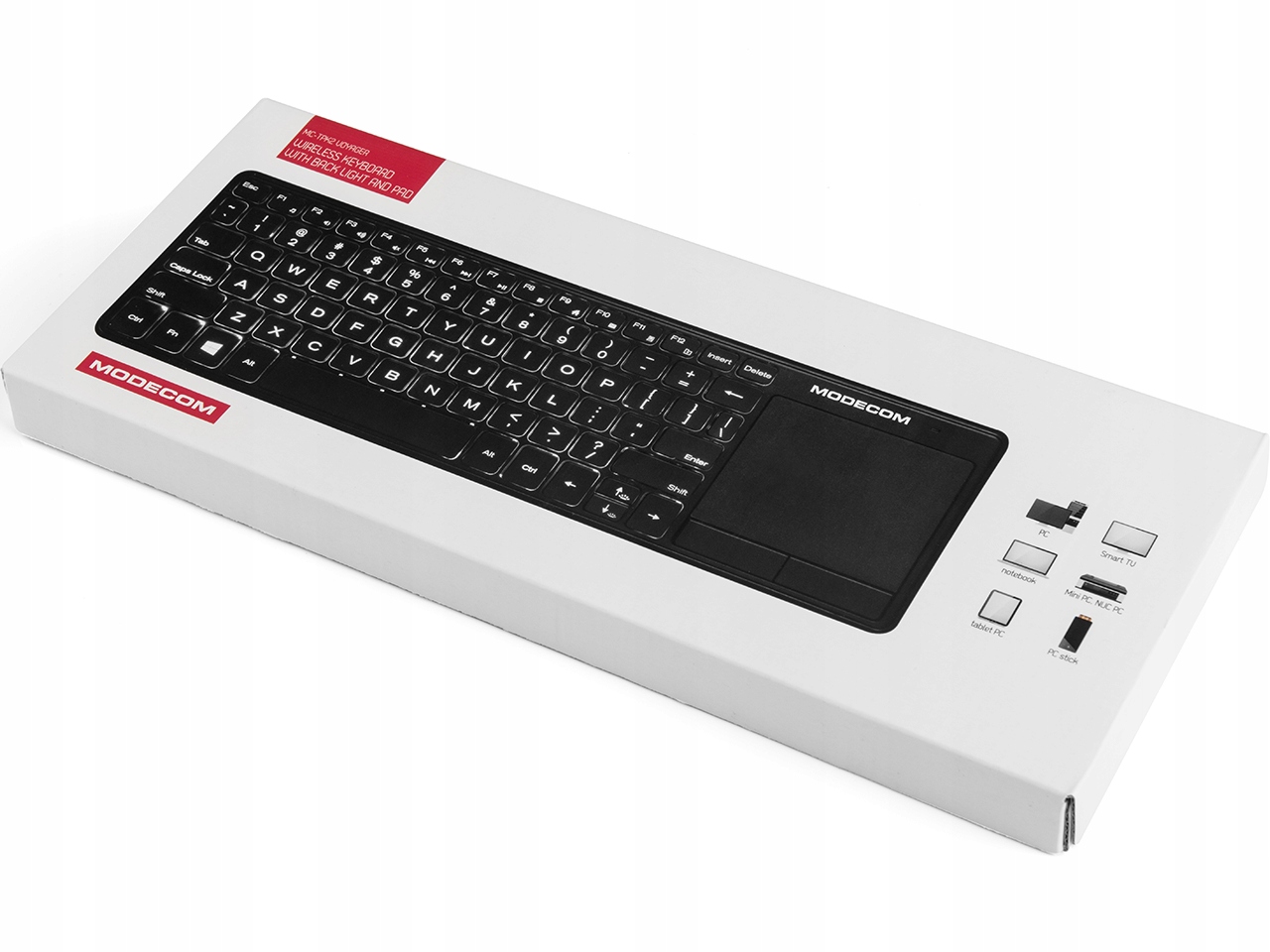 це бездротова клавіатура з підсвічуванням, оснащена повним набором клавіш і вбудованою сенсорною панеллю з двома кнопками. Завдяки цим функціям писати , переміщуючи, перетягуючи та збільшуючи зображення або просто клацаючи, це дуже легко та зручно. Швидка активація мультимедійних функцій дозволяє нам миттєво отримати доступ до мережі або улюблених мультимедійних файлів із фільмами, фотографіями та музикою.