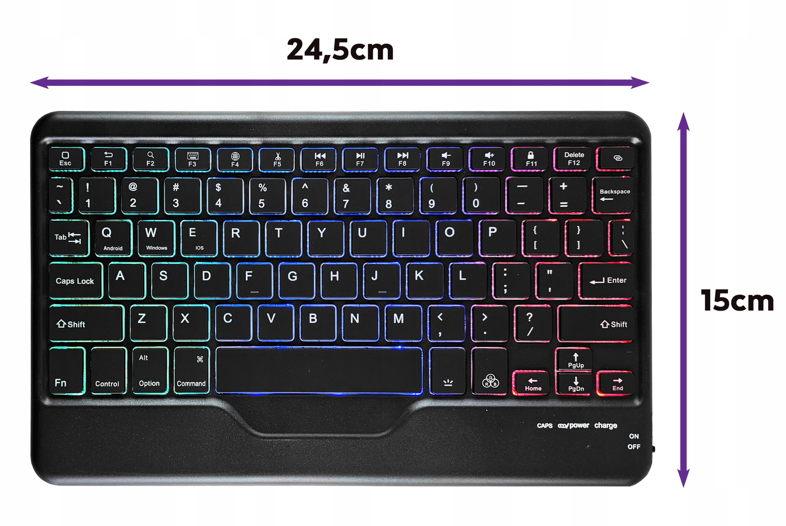 Клавіатура чудово працює з будь-яким пристроєм, оснащеним підключенням Bluetooth. Вона ідеально підходить для планшетів, телевізорів, смартфонів, ПК та багатьох інших. Завдяки компактним розмірам його зручно транспортувати та не займає багато місця.