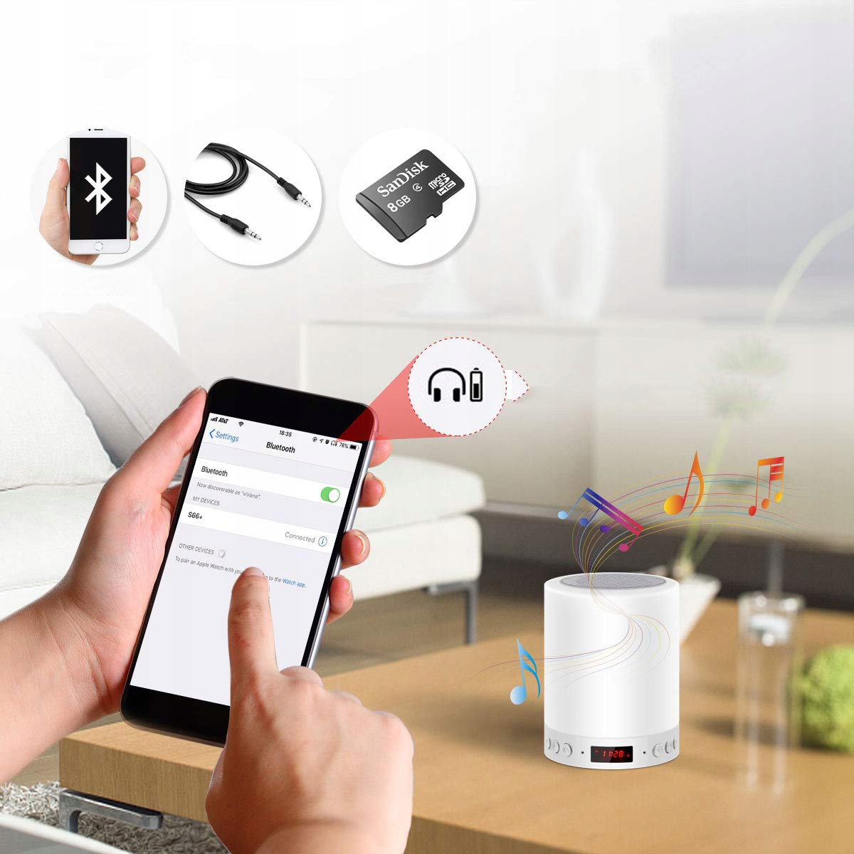 🎵🎵 Багатофункціональний пристрій 5 в 1: Bluetooth колонка + світлодіодна лампа з датчиком дотику + будильник + MP3 плеєр + функція hands-free. Все в одному портативному міні-USB-стереодинаміку. Просто натисніть кнопку, щоб використовувати його для вечірок, спорту та активного відпочинку.