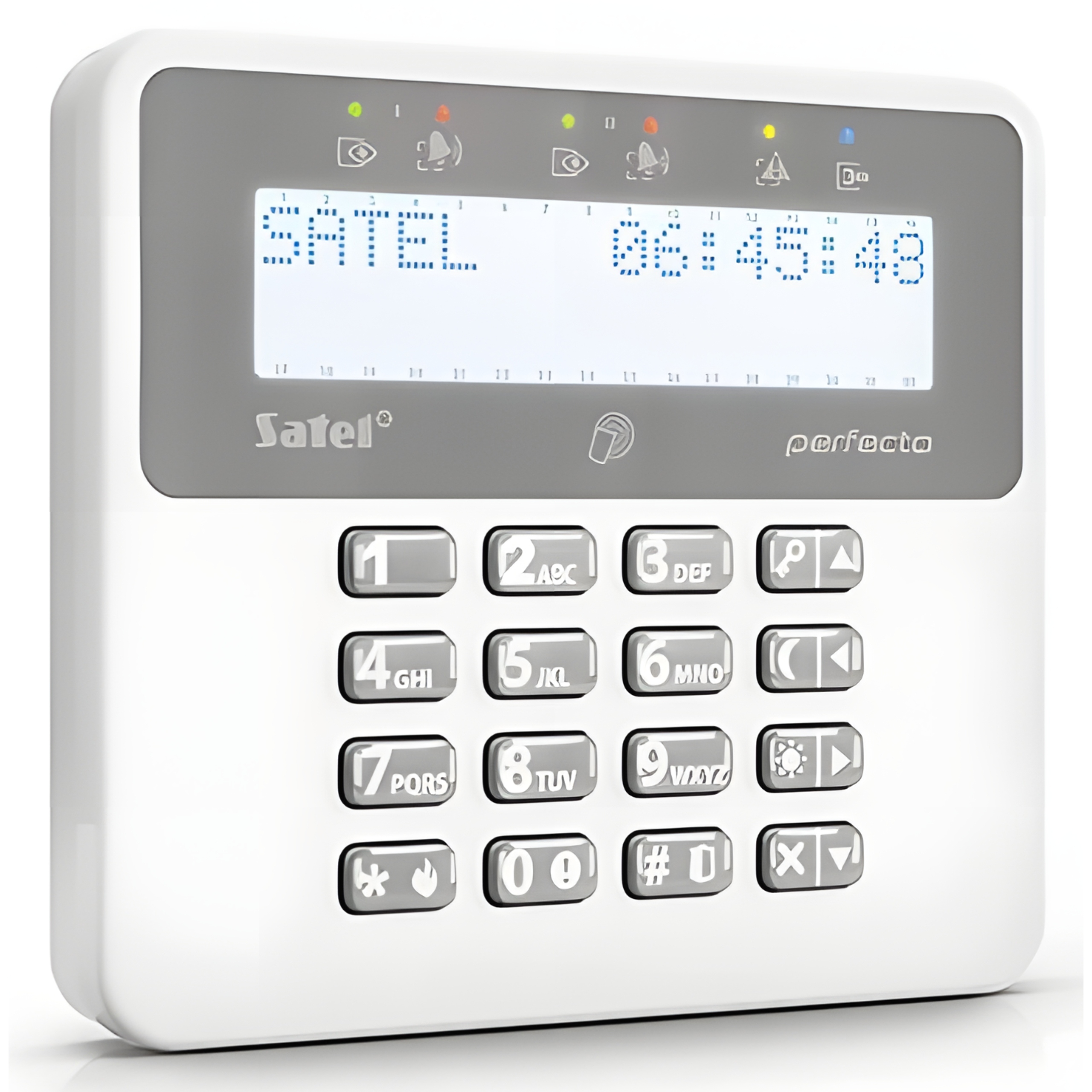 Він оснащений великими кнопками, чітким РК-дисплеєм ісвітлодіодами, що інформують про стан системи, що полегшує щоденну роботу. На додаток до цифрової клавіатури також є кнопки швидкого вибору для режиму очікування (денний, нічний і повний) і клавіші для запуску паніки, пожежної та додаткової тривог.