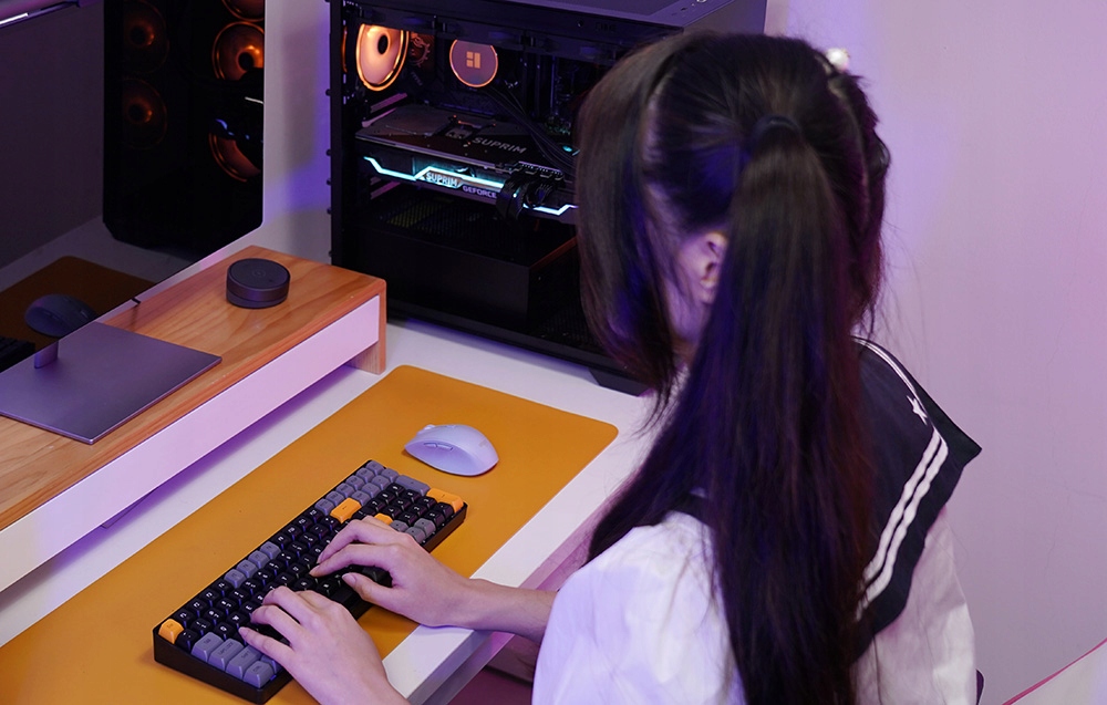 Насолоджуйтесь зручною роботою – на клавіатурі використовуються міцні PBT-клавіші, а функція захисту від ореолів забезпечує реєстрацію кожного натискання клавіші. Крім того, GD100 оснащений жовтими перемикачами з силою натискання 45 г і ходом 4 мм. А завдяки гарячій заміні ви можете замінити перемикачі, якщо це необхідно.