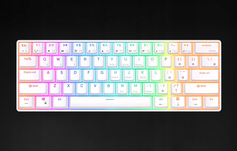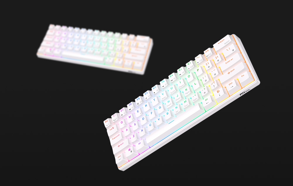 Клавіатура Royal Kludge RK61 ідеально підійде до вашої ігрової станції! Він оснащений кольоровим RGB-підсвічуванням, яка пропонує цілих 14 режимів роботи. Завдяки цьому ви можете налаштувати його під свої вподобання, створюючи унікальні світлові ефекти під час роботи чи гри. Його невеликий дизайн означає, що він поміститься на будь-якому столі, залишаючи більше місця для ваших проектів.