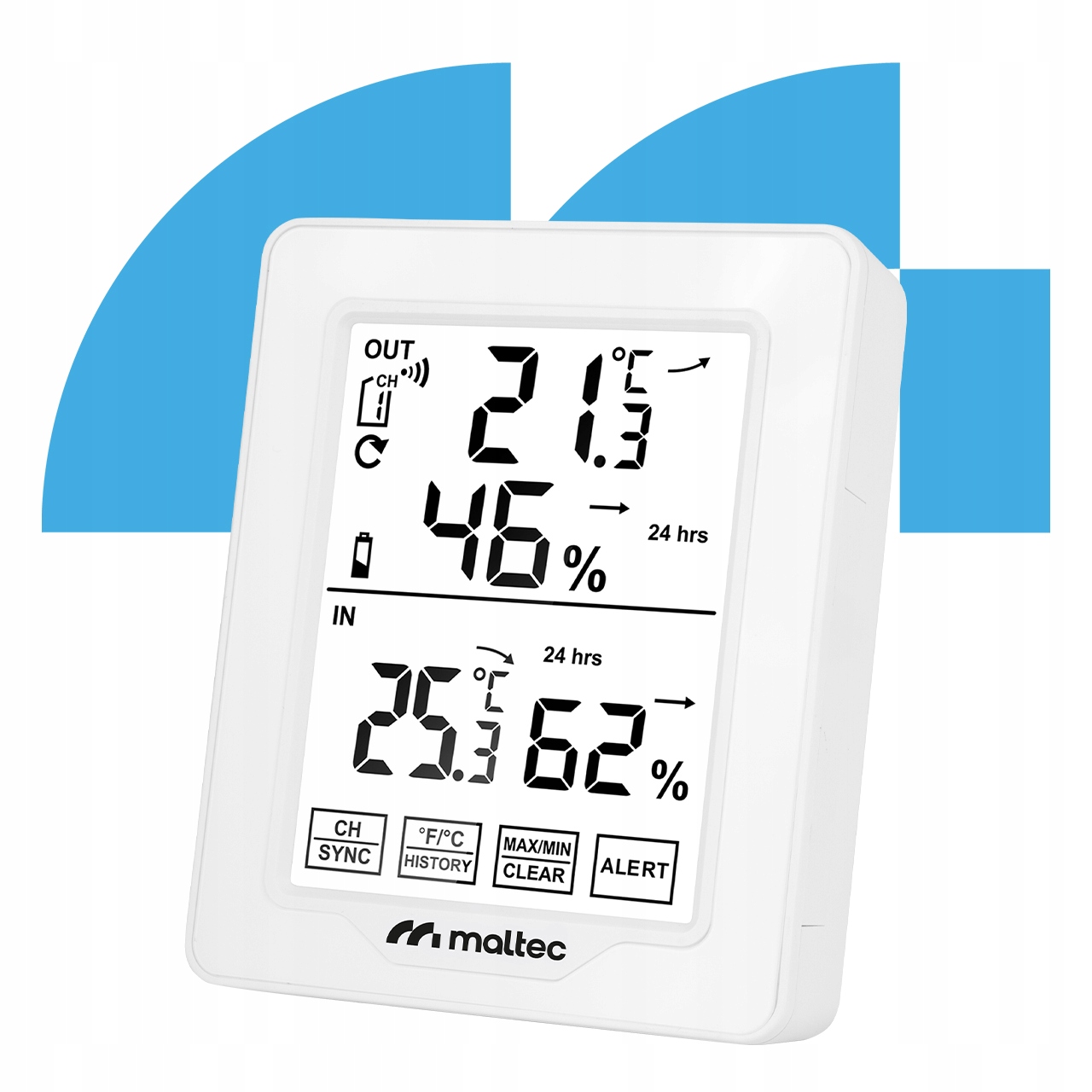 ◾ термометр ◾ higromete ◾ max./min реєстр. Значення ◾ Індикатор тенденції ◾ Температурна сигналізація ◾