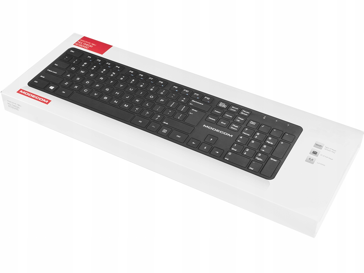 це офісна бездротова клавіатура преміум-класу, оснащена низькопрофільними клавішами, призначена для людей, які цінують максимальний комфорт роботи за комп’ютером. Клавіатура MODECOM MC-700W працює на основі бездротової радіотехнології. Завдяки цій технології ви зможете користуватися клавіатурою з великою свободою завдяки її великому діапазону 8 метрів. Клавіатура MODECOM MC-700W відрізняється низьким профілем клавіш, які характеризуються дуже високою культурою роботи, відомої користувачам топових портативних комп'ютерів. Корпус клавіатури MODECOM MC-700W відрізняється тонкою, але дуже стійкою конструкцією. Завдяки цьому клавіатура не змінить свого положення навіть при дуже швидкому наборі.