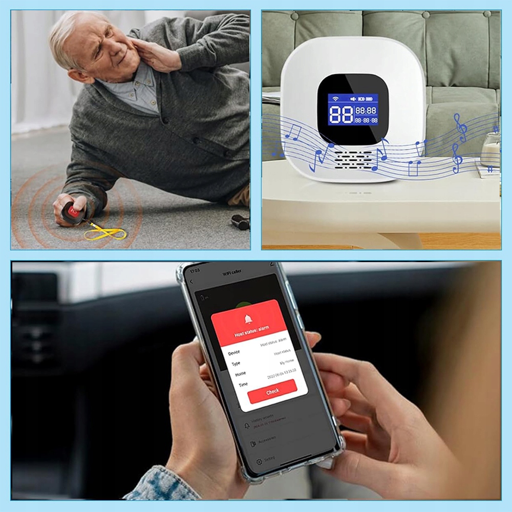 Ця важлива система екстреного виклику для людей похилого віку надає важливу допомогу літнім людям, які живуть вдома, в лікарнях або будинках престарілих (Система екстреного виклику для людей похилого віку).