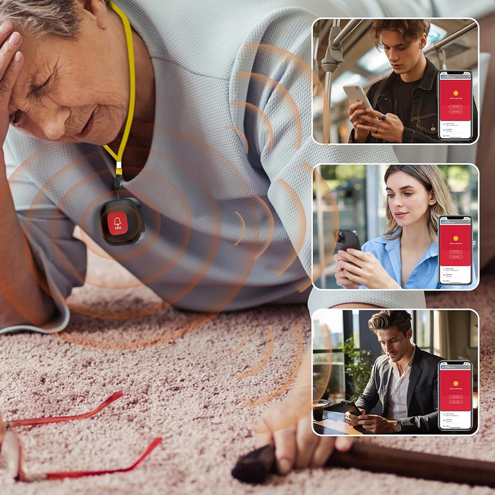 Коли літня людина, особа з обмеженими можливостями або дитина натискає кнопку тривоги, головний блок запускає тривогу та негайно надсилає сповіщення на смартфон опікуна через додаток.
