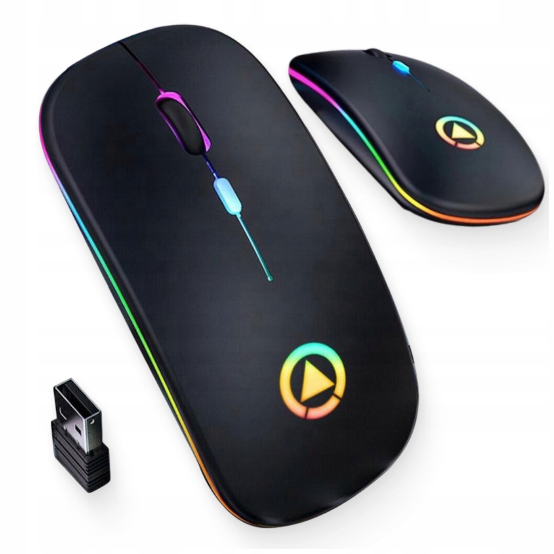 БЕЗДРОТОВА ПЛОСКА МИША, ТИХА, RGB-СВІТЛОДІОДНЕ ПІДСВІТЛЕННЯ, ЧОРНА МИША