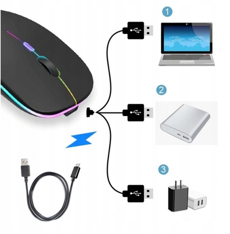 БЕЗДРОТОВА ПЛОСКА МИША ТИХА МИША З ПІДСВІТЛЕННЯМ RGB, ЧОРНА