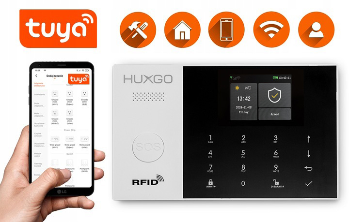 Панель сигналізації з сенсорною клавіатурою та меню польською мовою. Сумісний із програмою TUYA SMART, що дозволяє створювати так званий розумний дім.