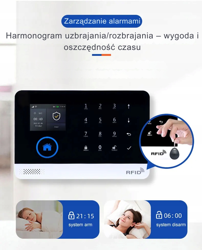 - Possibility of operating up to 99 wireless sensors and 10 RFID key rings