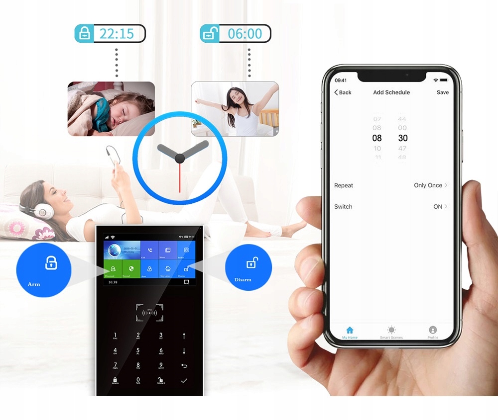 Ви можете встановити час автоматичного ввімкнення будильника, коли ви йдете з дому на роботу. Коли ви повернетеся, будильник можна вимкнути, поки ви не ляжете спати. Ви регулярно встаєте вранці? Будильник буде вимкнено, доки ви не підете на роботу.
