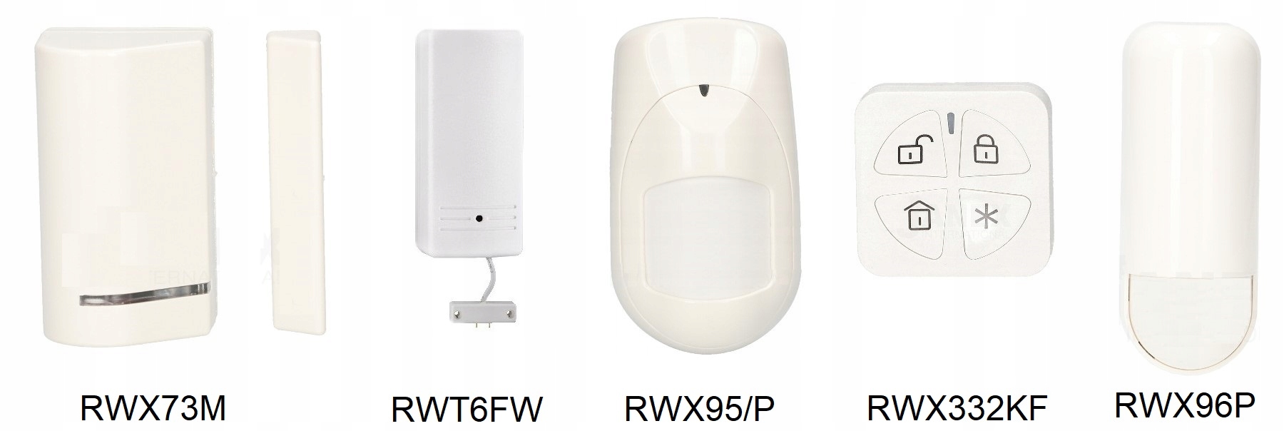- 3x Wireless devices to choose from in any configuration: motion detector, reed switch, flood detector, remote control RWX73M86800D / RWT6FW86800B / RWX95086800A / RWX95P86800C /RWX332KF800B / RWX96P86800A each device is взаємозамінний на інший у пропорції 1 до 1 (будь ласка, вкажіть у повідомленні продавцю, які пристрої відправити, якщо ви хочете, наприклад, 2 пульти дистанційного керування + 3 PIR-детектори + 1 детектор затоплення, будь ласка, виберіть аукціон із 6 PIR-детекторами в описі)