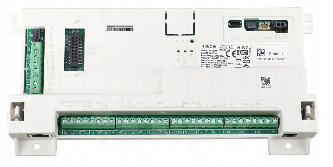 Панель керування LIGHTSYS Plus працює з провідними, бездротовими та шинними датчиками. За замовчуванням він має 8 ліній тривоги на платі, які можна розширити до максимум 512 за допомогою модулів RP432EZ8 (8 входів), а також 4 програмованих виходу , яку ми можемо розширити до 196.