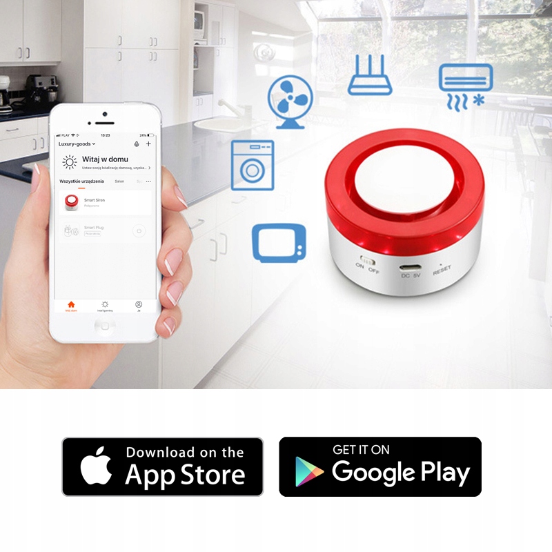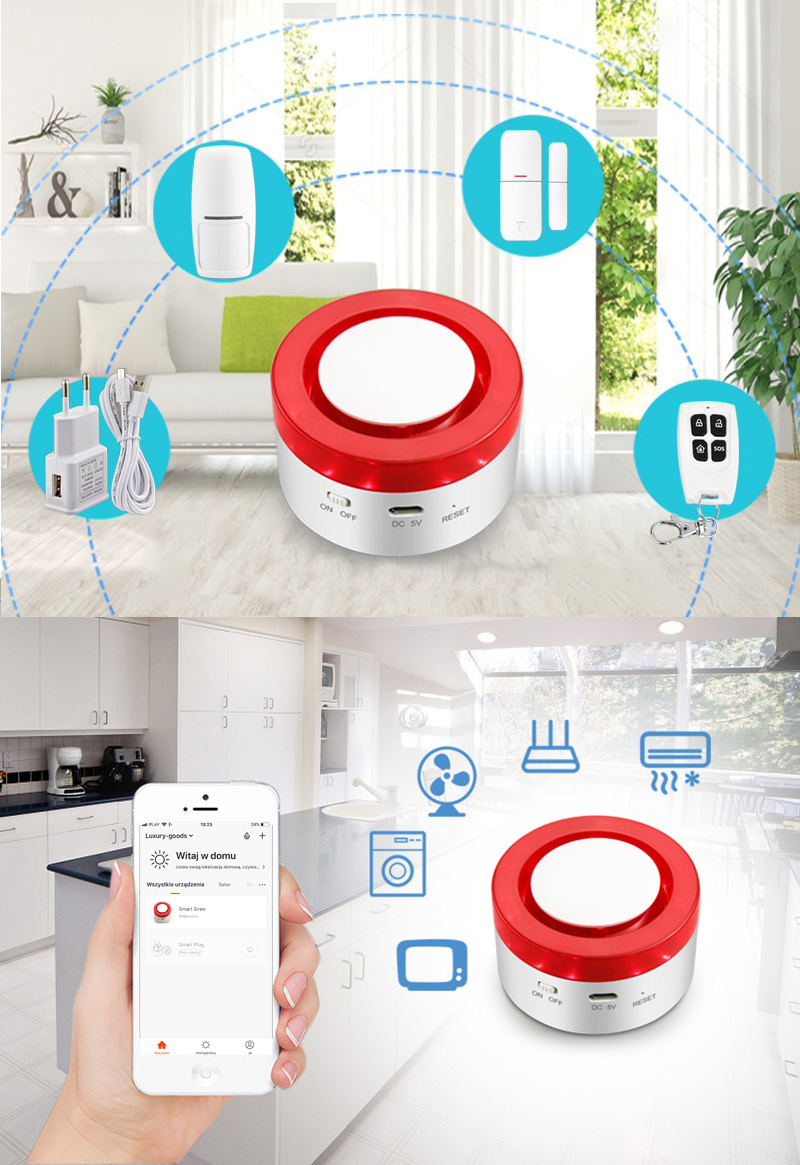 Висококласна WIFI сигналізація на ринку - звукова та світлова сигналізація - управління через TUYA, GOOGLE ASSITANT, AMAZON додатки ALEXA