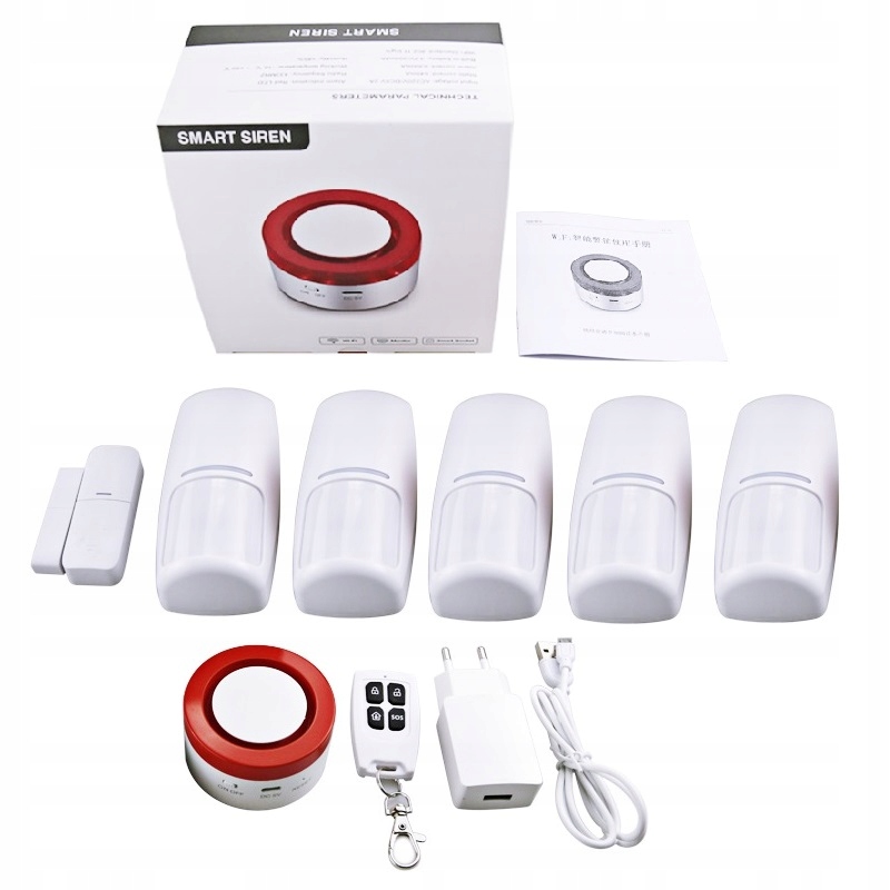 BEZPRZEWODOWA SYRENA ALARMOWA WiFi TUYA SMART PO POLSKU +5xPIR