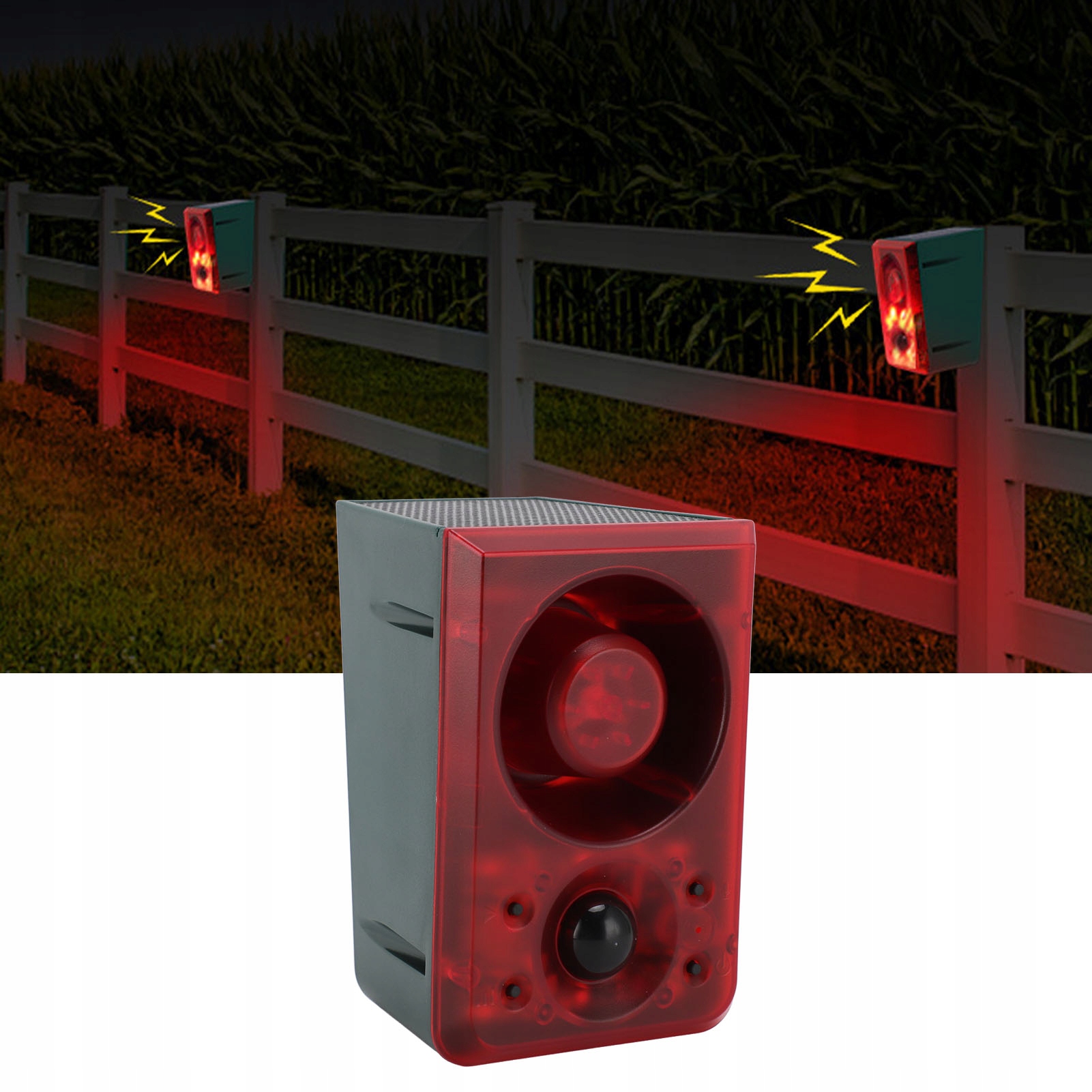 2. Датчик руху PIR: кут виявлення 120 °, виявляйте кожен рух в радіусі 5-8 метрів і запустить звук та візуальний сигнал, звук та стробовий світло ввімкнуться. Спалах має 6 червоних світлодіодів, які захищають вашу ферму від злодіїв.