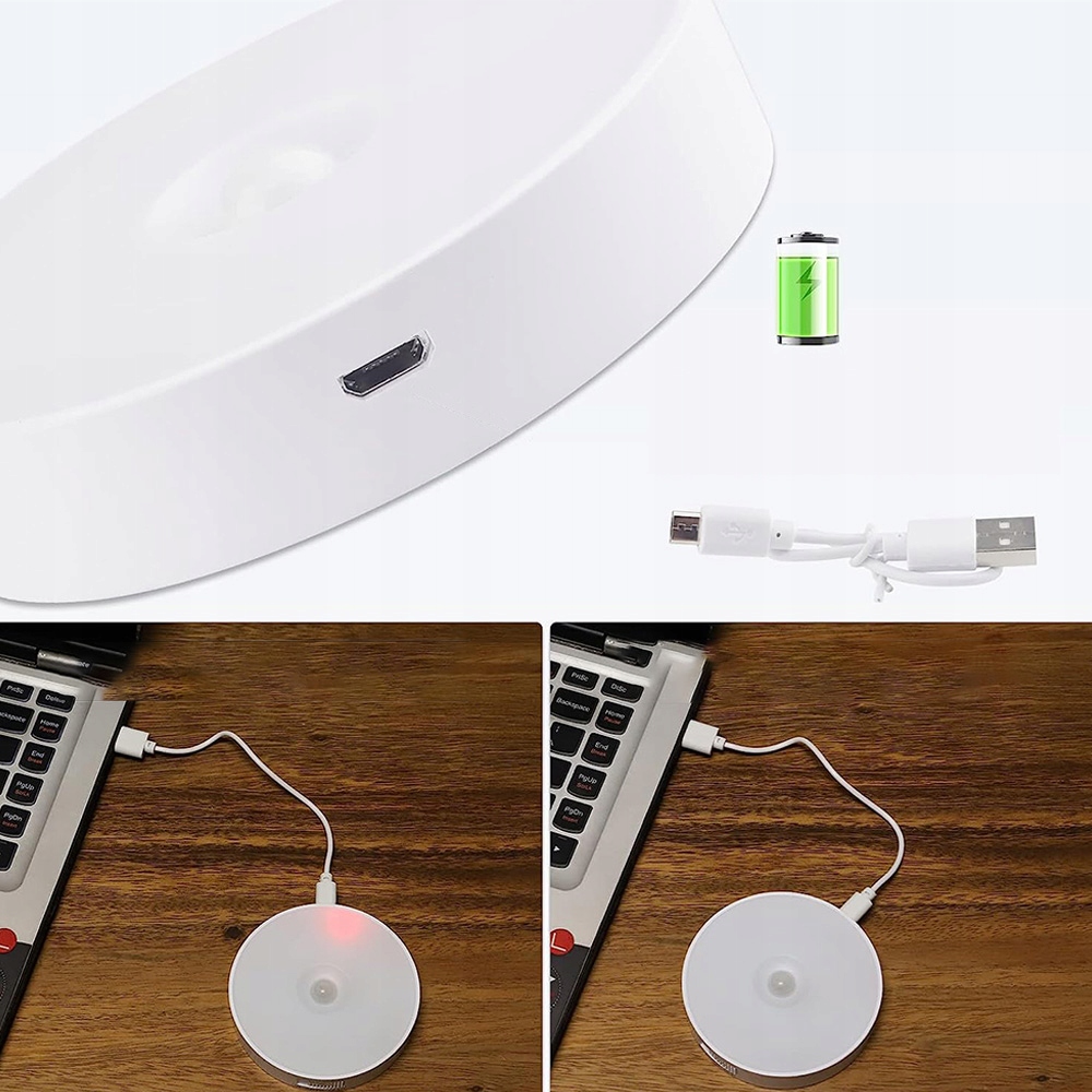 - - Три режими регулювання: увімкнено / автоматично / вимкнено. При переході в режим AUTO датчик руху активується в темряві. Вмикається автоматично при виявленні руху в межах 3-5 м. Автоматично вимикається приблизно через 25 секунд, якщо не виявлено руху. У режимі ON світло горить завжди. - За допомогою кабелю USB, щоб ви могли заряджати його через зарядний штекер телефону або USB-порт. Вбудованого акумулятора ємністю 400 мАг вистачає на 10-12 годин у режимі безперервного освітлення та 15-20 днів у режимі сенсора після повної зарядки.
