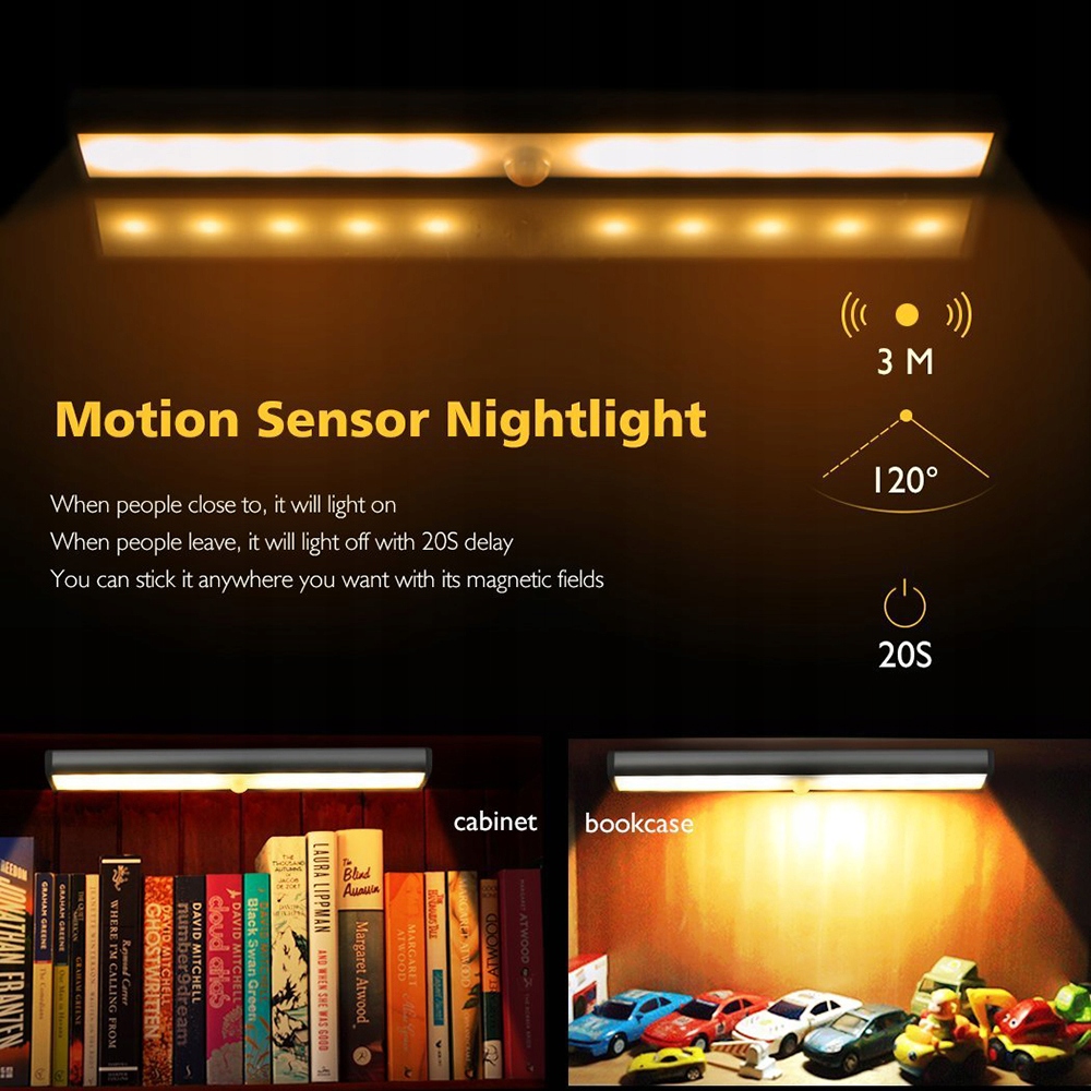 * Перезаряджуваний USB та енергозберігаючий підсвітка під шафою: вбудований акумулятор великої ємності 1500 мАг, легко заряджається через USB-кабель (в комплекті) або блок живлення. Після повного заряджання освітлення корпусу може працювати приблизно 8-10 годин у режимі миттєвого ввімкнення та 1-2 місяці в режимі виявлення руху.