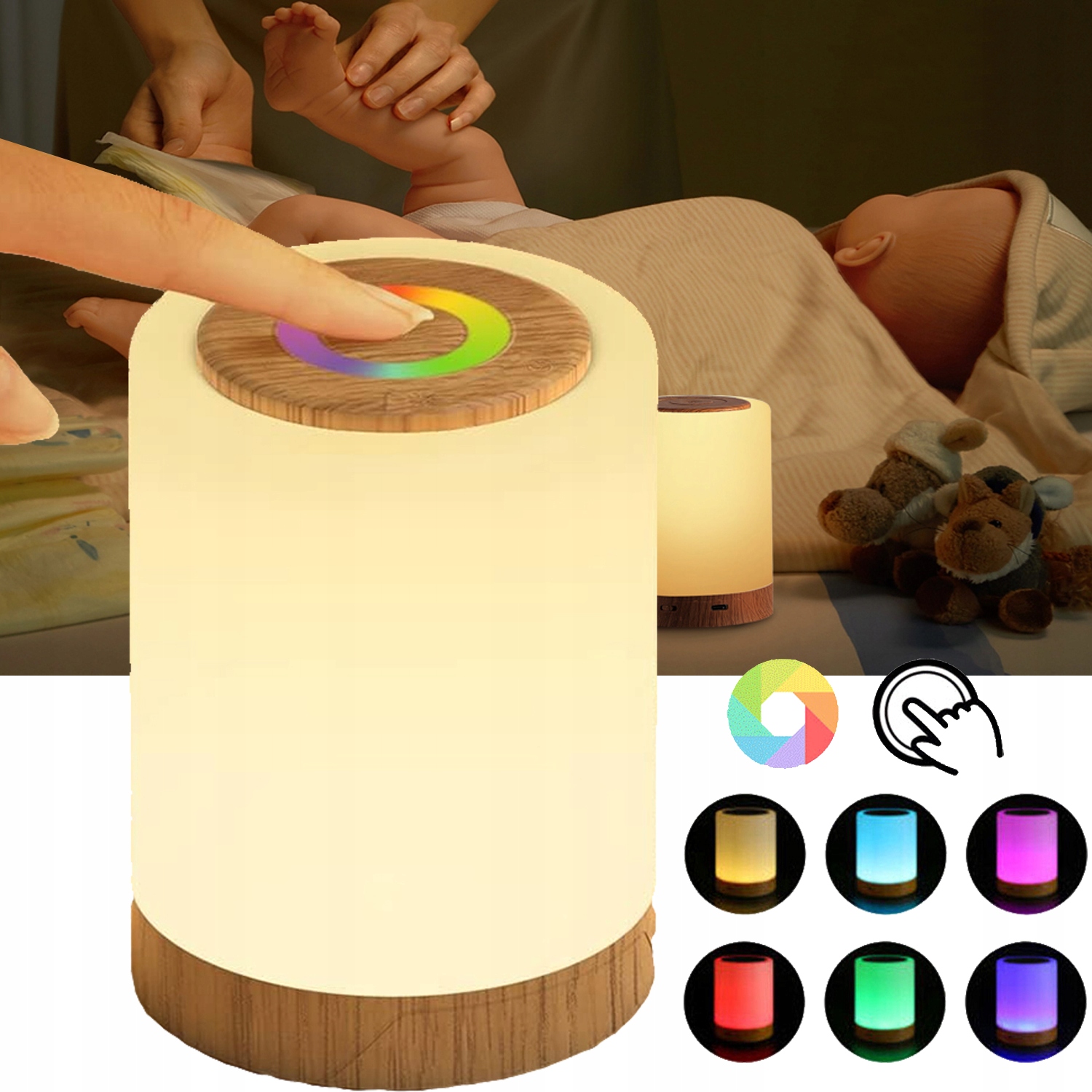 ✔ 【багато кольорів】 Ви можете переключити типи красивих барвистих вогнів з круглої палітру у верхній частині тьмяної нічної лампи, як ви хочете. 4 Режими освітлення можуть створювати різні настрої, такі як романтичні, теплі або розслабляючі. Нічна лампа Touch Lamp також ідеально підходить для використання на вечірках, у салонах, у кемпінгу.
