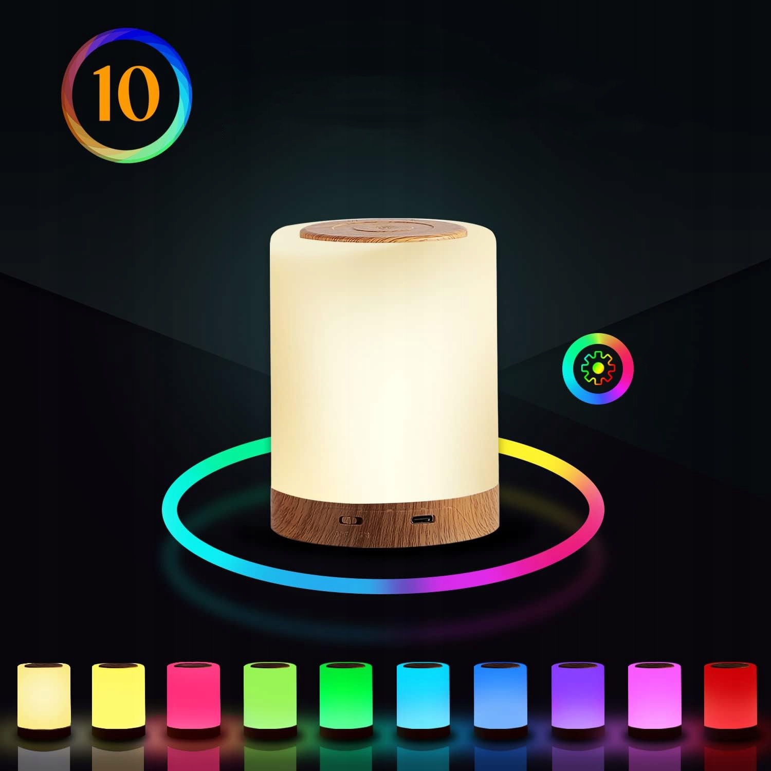 Бездротова світлодіодна настільна лампа з функцією таймера, затемнена, 10 кольорів
