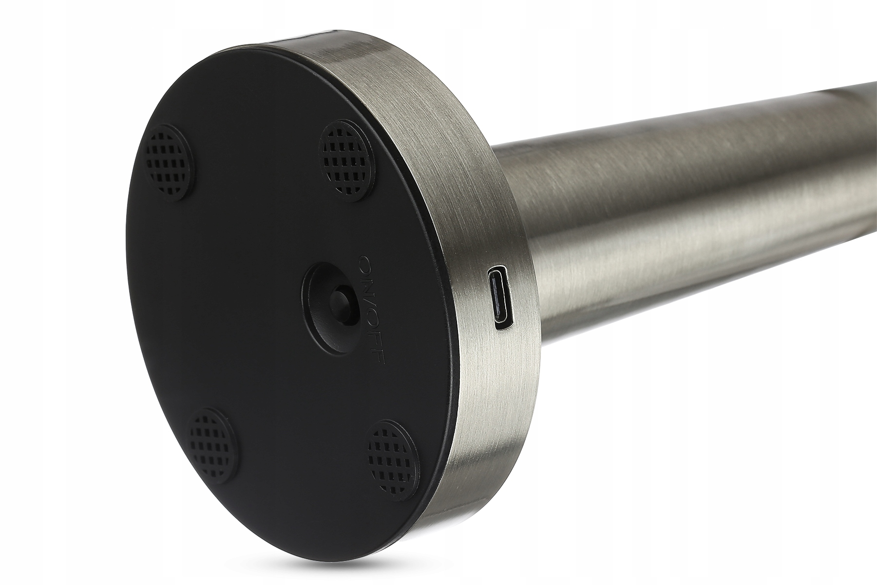 Металева конструкція та матове покриття підкреслюють вишуканий вигляд лампи. Абажур — це сенсорна панель, за допомогою якої ми можемо вмикати та вимикати пристрій, змінювати режим та інтенсивність освітлення.