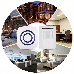 Бездротова сигналізація з датчиком руху та дверним дзвінком. 3 рівня гучності, 38 мелодій і світлодіодні індикатори. 1 датчик, 1 приймач.