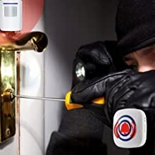 Безпечна технологія: наш датчик використовує технологію пасивного інфрачервоного випромінювання (PIR), щоб сигналізувати про будь-який рух у зоні покриття. Якщо людина або тварина знаходиться в зоні виявлення (3-7 м x 110°), детектор руху може виявити незначну зміну за допомогою синього світлового сигналу, після чого він негайно надішле сигнал до приймача, і приймач відтворить вибраний сигнал дзвінка, і світлодіодний індикатор увімкнеться.