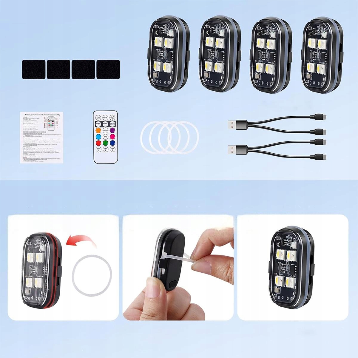 ✨✨4 шт. оновлених бездротових світлодіодних спалахів із 4 світлодіодами та пультом дистанційного керування, 8 кольорів, перезаряджувані світлодіодні ліхтарі Type-C, попереджувальні ліхтарі запобігання зіткненню для автомобілів, мотоциклів, велосипедів, дронів і літаків✨✨