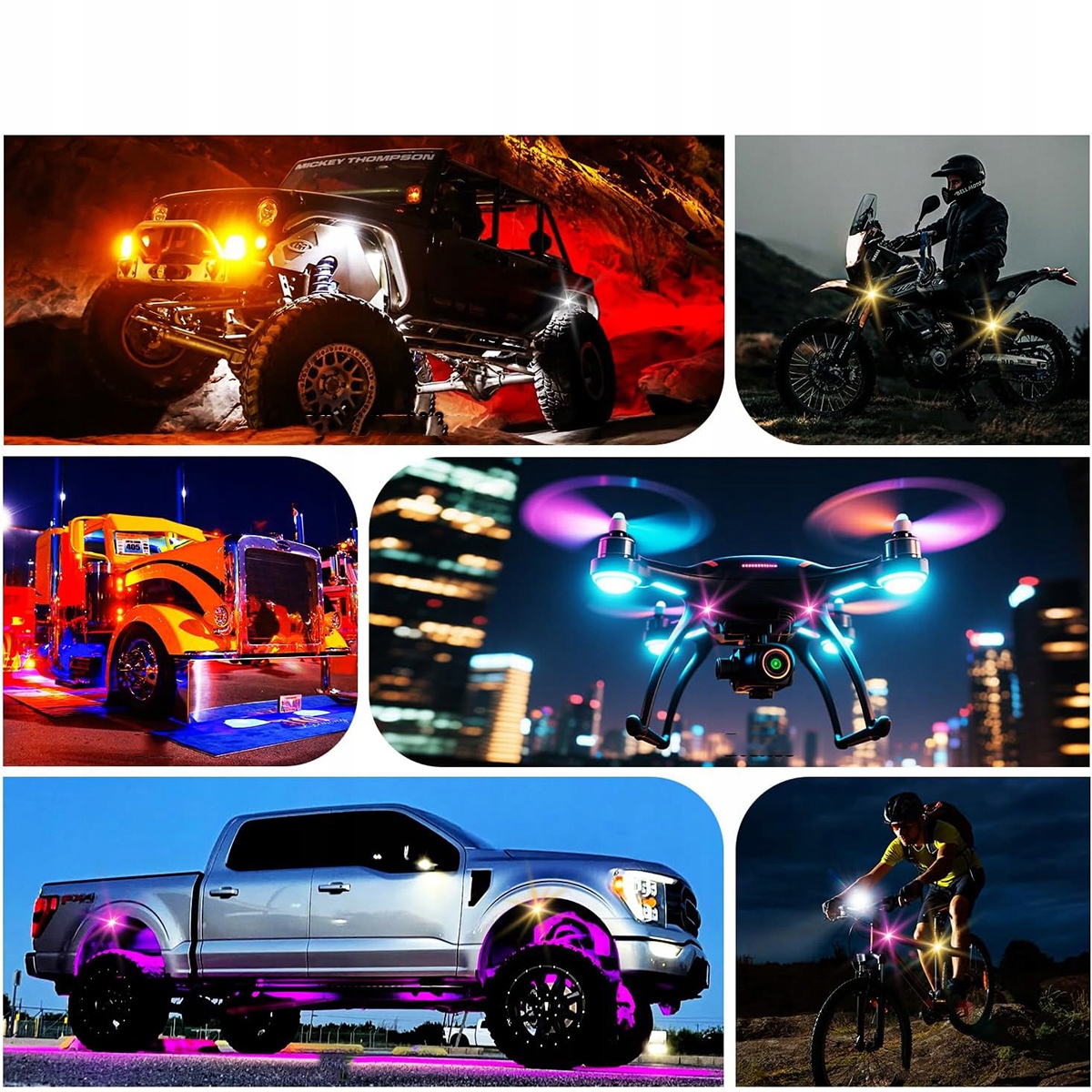 ✅4. Бездротове освітлення автомобіля – Встановлення за 30 секунд – Для кожного автомобіля. Прикріпіть їх до рами автомобіля чи велосипеда за допомогою липучок; використовуйте гумки, щоб прикріпити їх до ручок дрона або човна. Встановіть мініатюрні стробоскопи за лічені секунди в салоні автофургону, вогні на ялинку чи освітлення під кузовом.