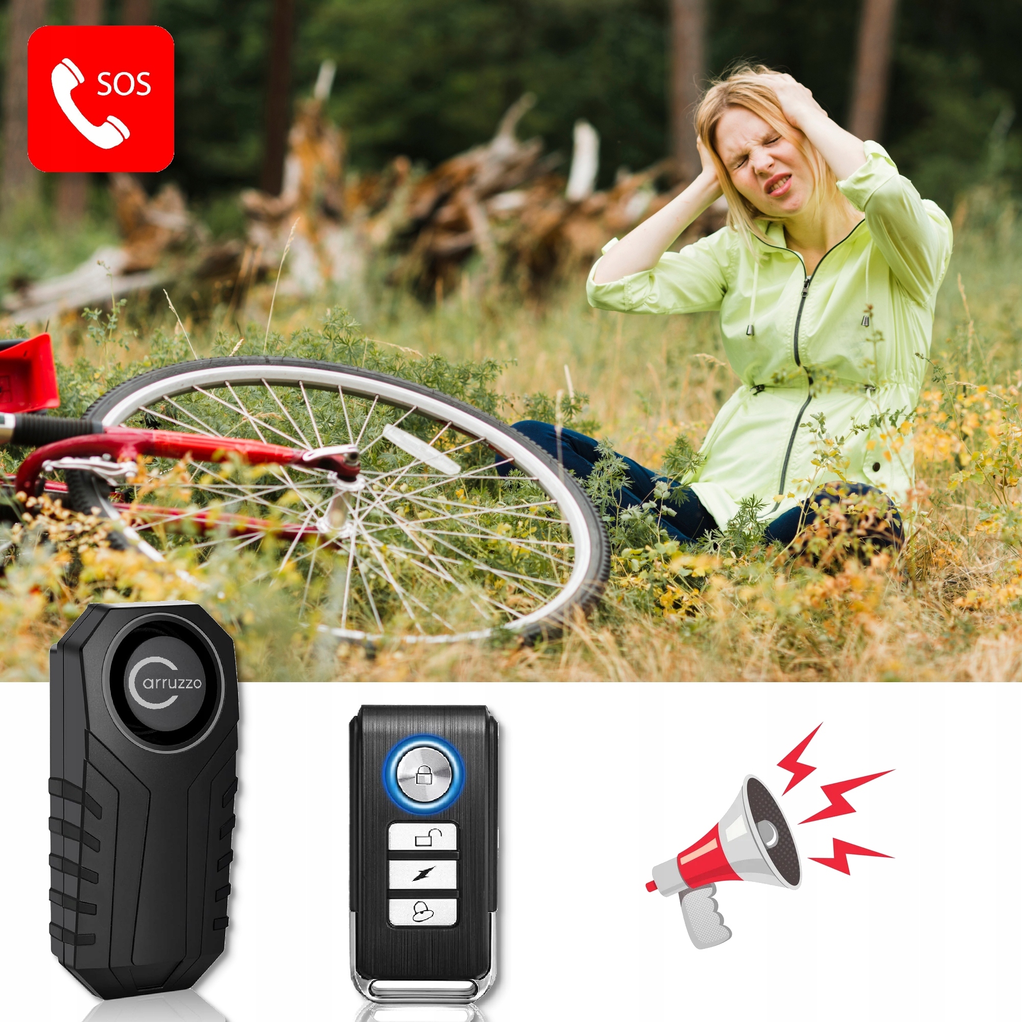 ✔ Функція SOS - сигналізація виявляє падіння велосипеда/мотоцикла та видає звуковий сигнал SOS.