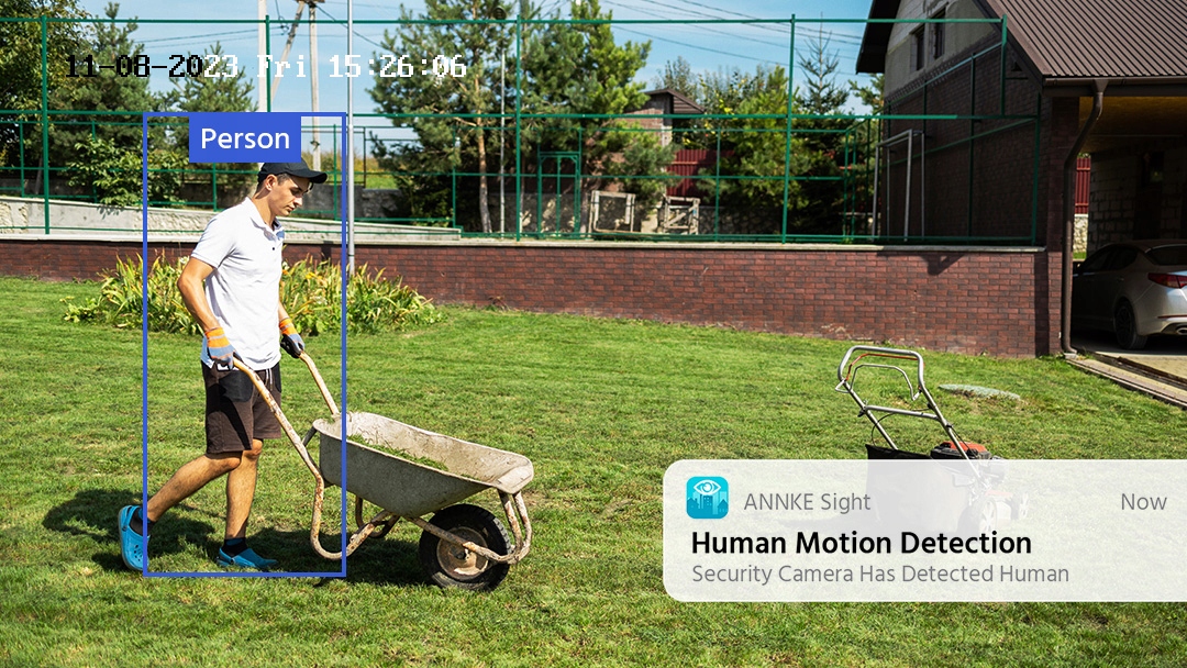 Камера має інтелектуальну функцію виявлення, яка дозволяє їй відстежувати та записувати рухи та звуки, коли вона виявляє людину. Надсилає сповіщення в режимі реального часу на ваш мобільний пристрій, щоб переконатися, що ви знаєте про будь-яку підозрілу активність, що дозволяє швидко реагувати. Допомагає чітко зафіксувати кожну мить і негайно вжити необхідних дій.