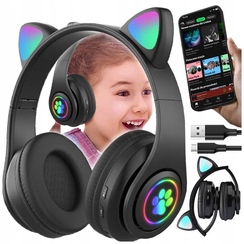 ✅ Bluetooth -з'єднання ✅kocie Ears ✅ rgb roverning ✅ aux та для картки пам'яті до наймолодшої ✅ ідеальної якості звуку ✅ідеаль подарунків