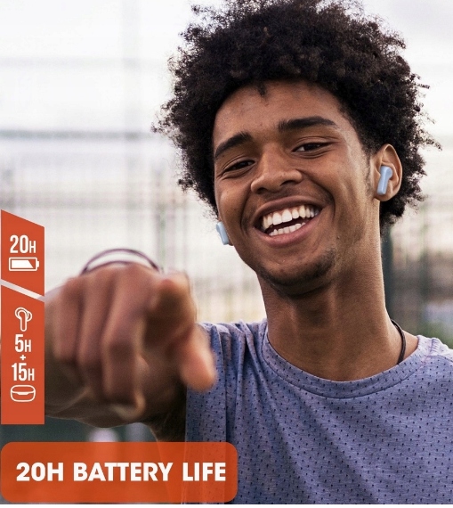 Бездротові навушники дуже легко заряджати. Просто помістіть їх у футляр, який також має функцію зарядки. Ви можете відтворювати музику до 5 годин, а потім зарядити навушники 3 рази за допомогою футляра. Завдяки цьому ваші навушники завжди будуть готові, тож ви зможете насолоджуватися чудовим звуком, де б ви не були
