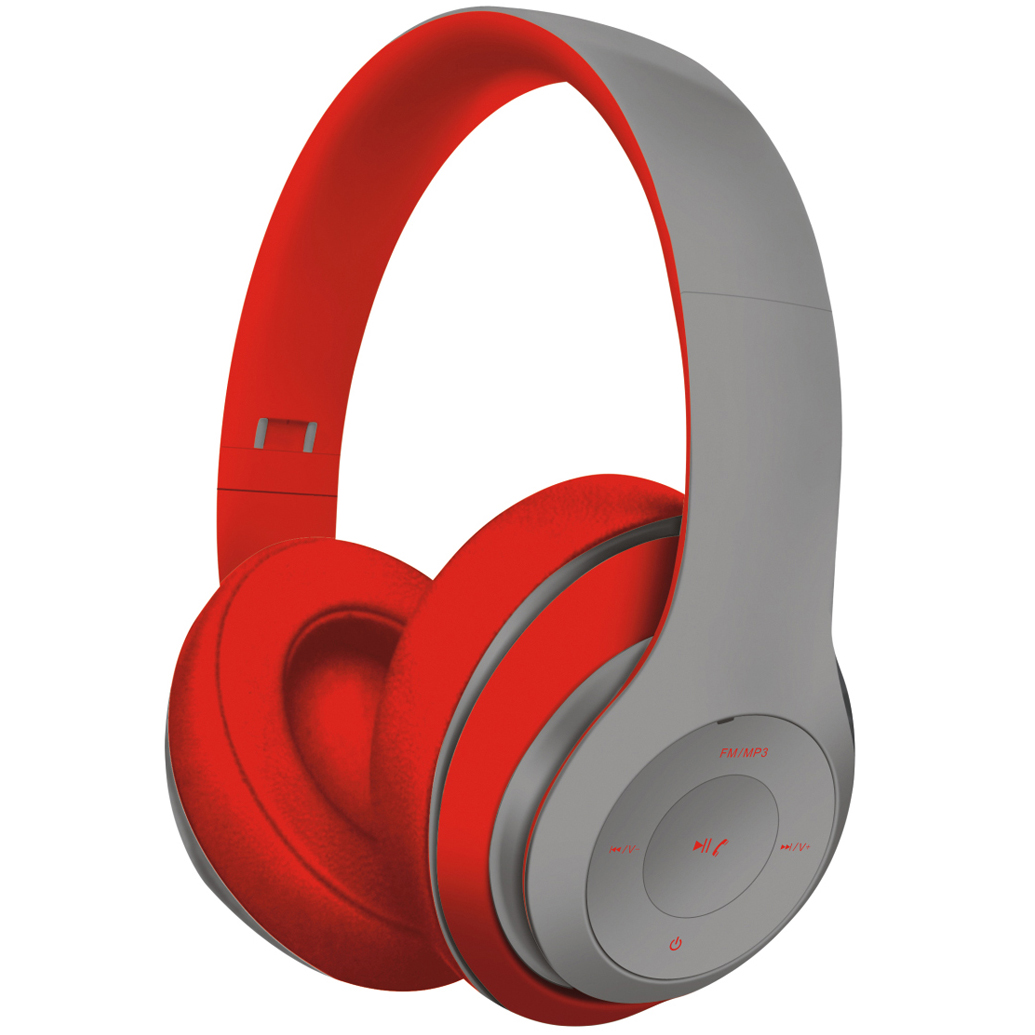 Бездротові навушники Freestyle Bluetooth v.3.0, FM-радіо, пристрій для читання карт MicroSD, глянцеві сіро-червоні