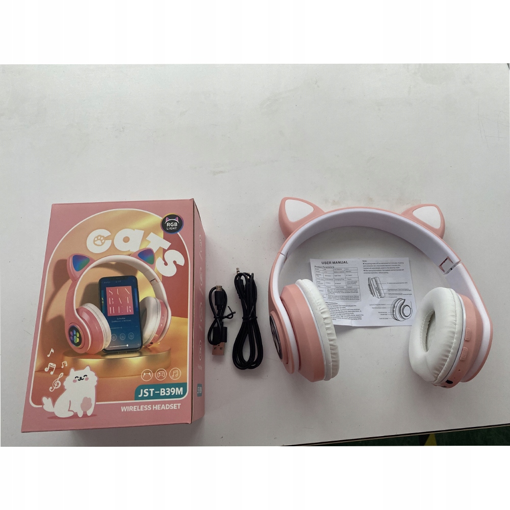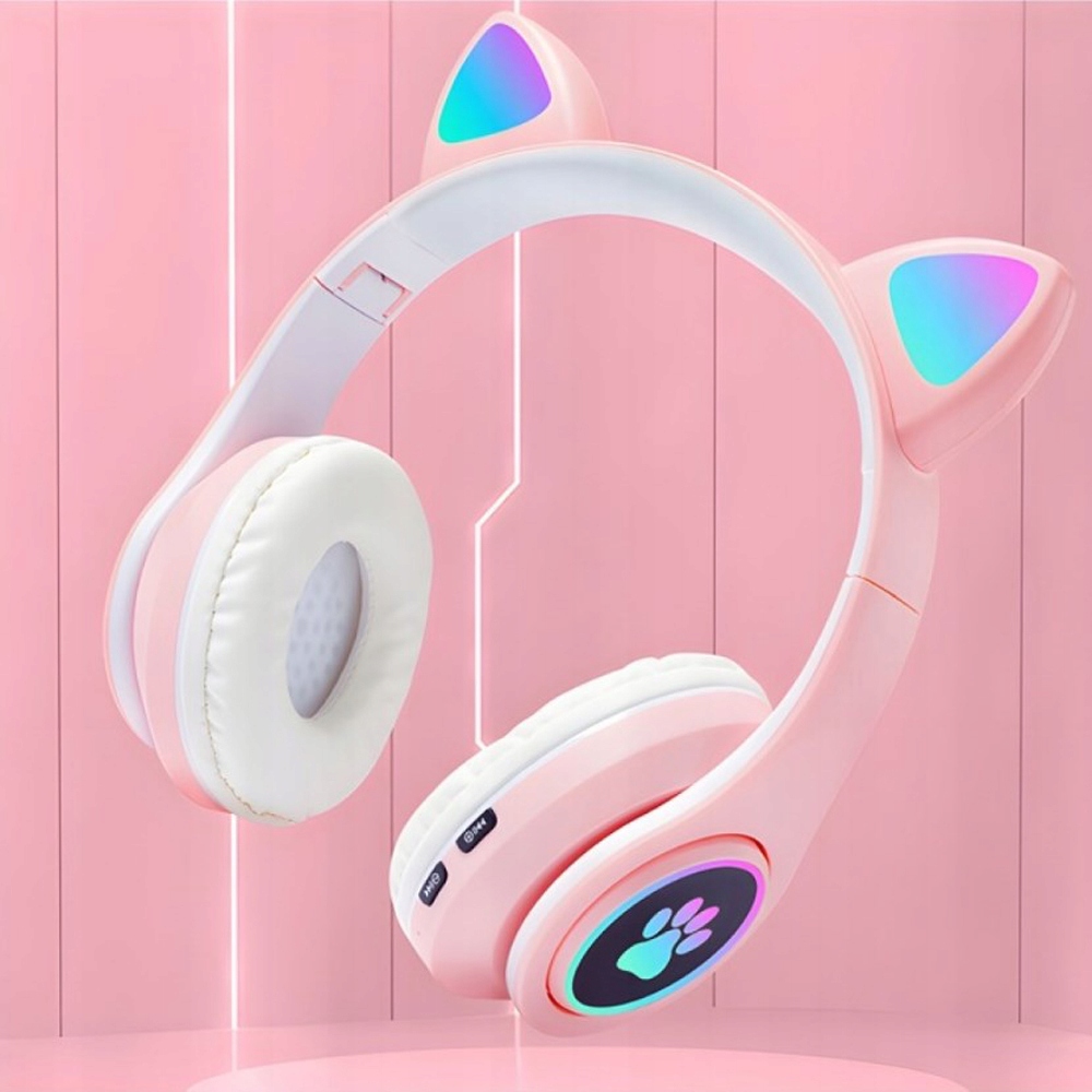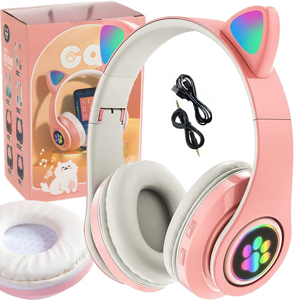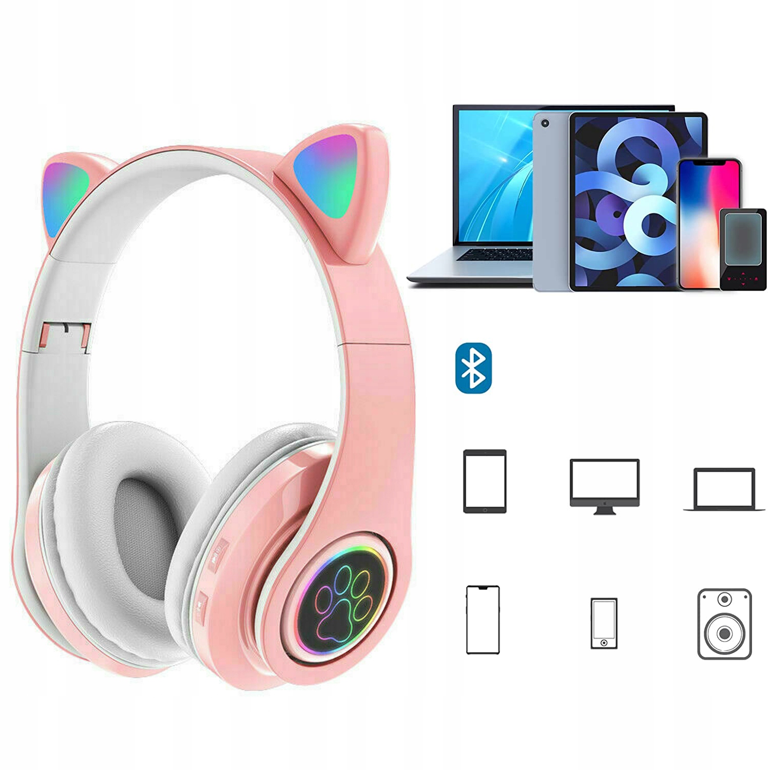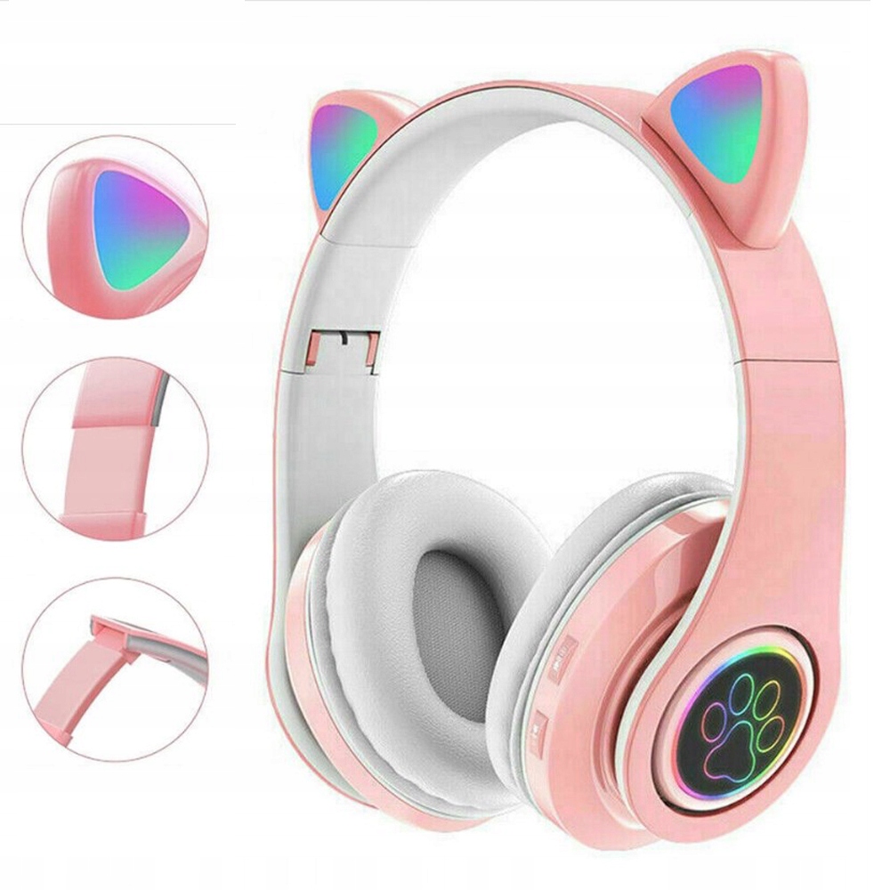 БЕЗДРОТОВІ НАВУШНИКИ ДИТЯЧІ РОЖЕВІ З МІКРОФОНОМ КОЛЬОРОВІ КОТЯЧІ ВУШКА
