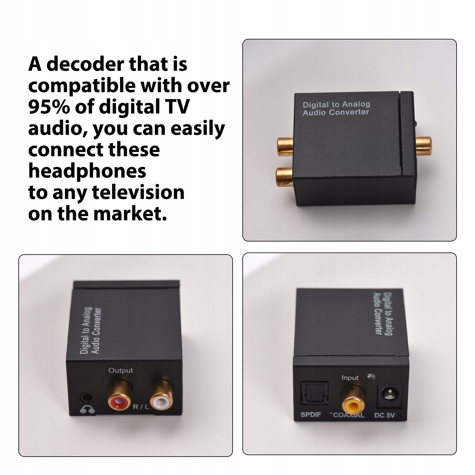 Функція: 1. Завдяки побудованому декодеру, який сумісний з понад 95% цифрового телевізійного аудіо, ви можете легко підключити ці навушники з будь -яким телебаченням на ринку.