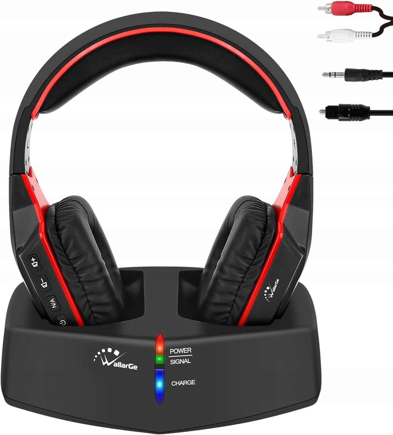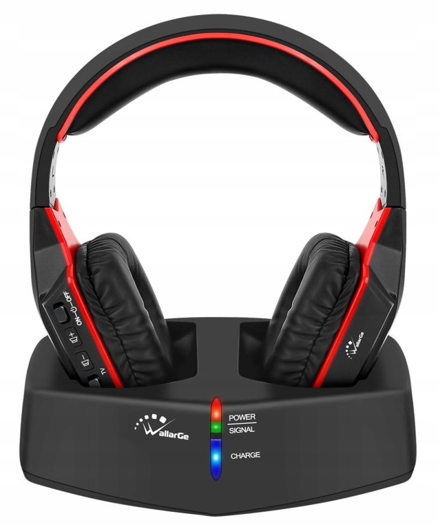 Wallarge Wireless TV/TV навушники, бездротові навушники з RF 5,8 ГГц, цифрова зарядна станція з діапазоном 33 м, для телевізора, Hifi, передавач з оптичним портом та AUX (чорний
