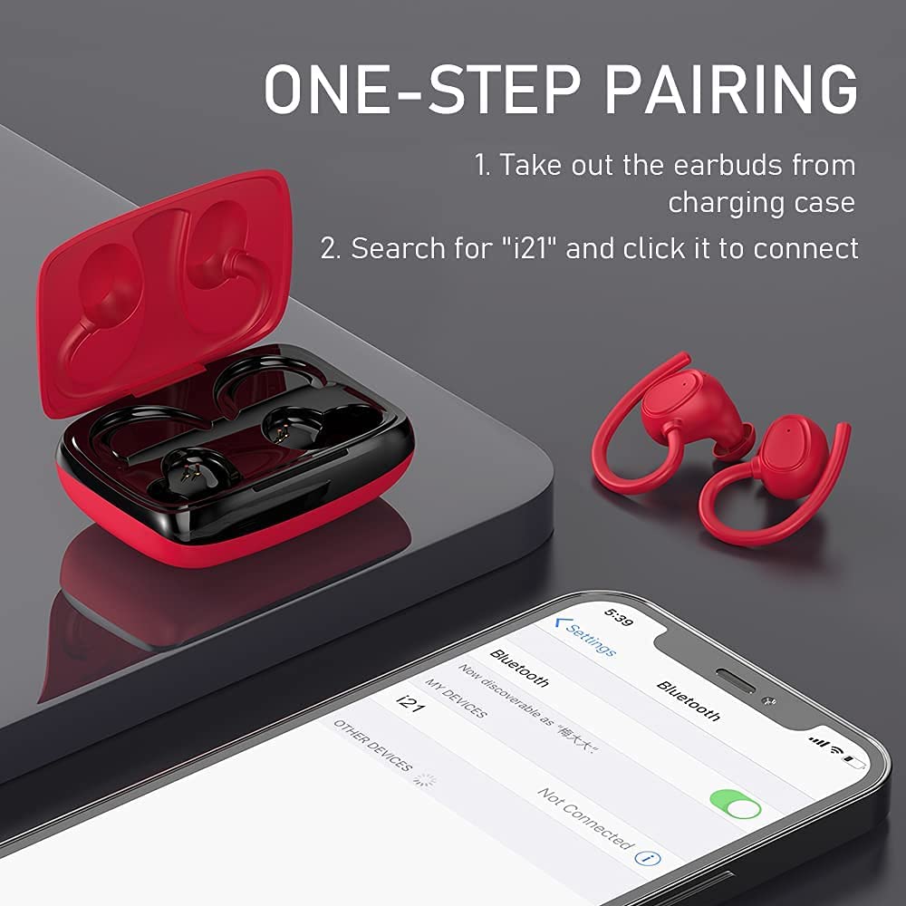 бездротові навушники використовують розширену Bluetooth 5.1, яка пропонує неперевершений звуковий досвід з більшою швидкістю передачі, більшою стабільністю підключення та більш високим діапазоном Bluetooth без сигналу втрата. Взяте з корпусу для зарядки, слухавка Bluetooth буде паруватися автоматично і просто виберіть i21 зі списку Bluetooth на пристрої для підключення. За кілька секунд ви перебуваєте в світі музики.