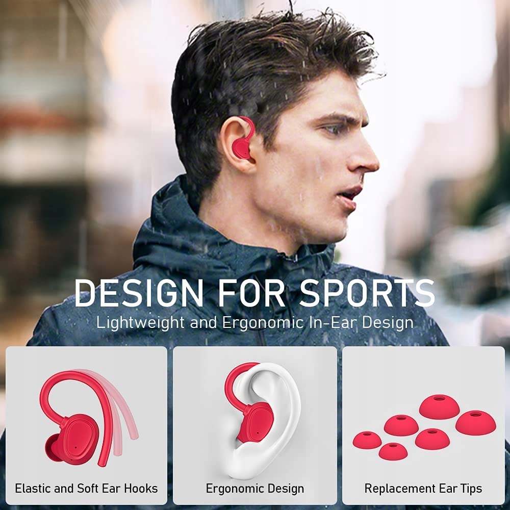 регульований, м'який і безпечний хакерський силіконовий хакер, гарантуючи, що спортивна вставка душа зручно стабільна під час занять спортом. Оснащений 3 парами запасних капелюхів різного розміру. Навіть робіть інтенсивні вправи, бездротові навушники не впадуть. Водонепроникний IPX7 без зусиль захищає спортивні навушники від сильного дощу або тоді під час інтенсивних тренувань та погодних умов. Ідеально підходить для спорту, бігу, пробіжок, подорожей тощо