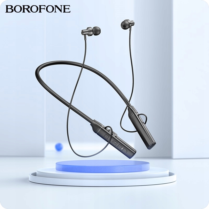 BOROFONE BE65 Gratifiedце бездротові вкладиші/кутові навушники з технологією Bluetooth 5.3, оснащений з'єднувальним кабелем довжиною 92 см, шийним ременем, а також магнітними корпусами, щоб запобігти втраті та заплутуванню навушників. Навушники мають мікрофон, який дозволяє здійснювати телефонні дзвінки та кнопки для керування музикою, гучністю або телефонними дзвінками та розмовами. Крім того, в навушниках є кнопка активації голосового помічника.