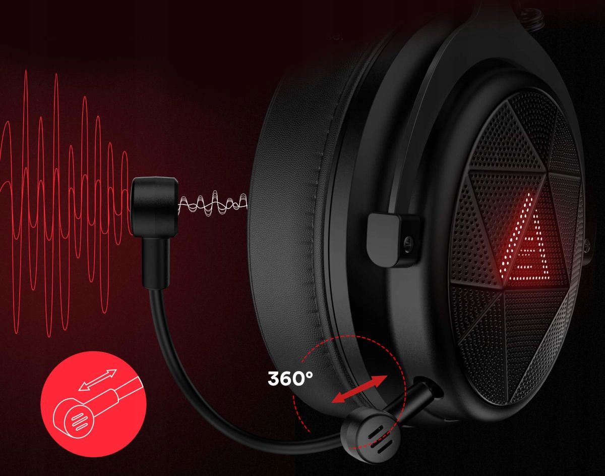 - Освітлення: червоне трикутне Світлодіодний індикатор на кожній чашці навушників.