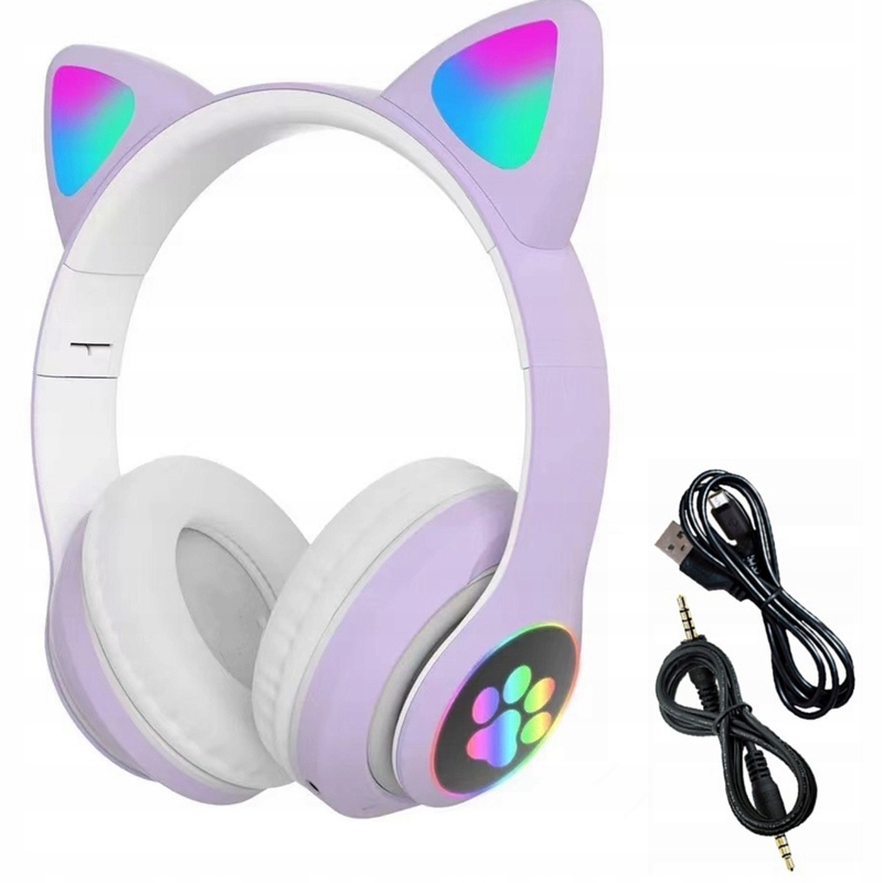 БЕЗДРОТОВІ НАВУШНИКИ З МІКРОФОНОМ КОЛЬОРОВІ LED КОТЯЧІ ВУШКА ДЛЯ ДІТЕЙ