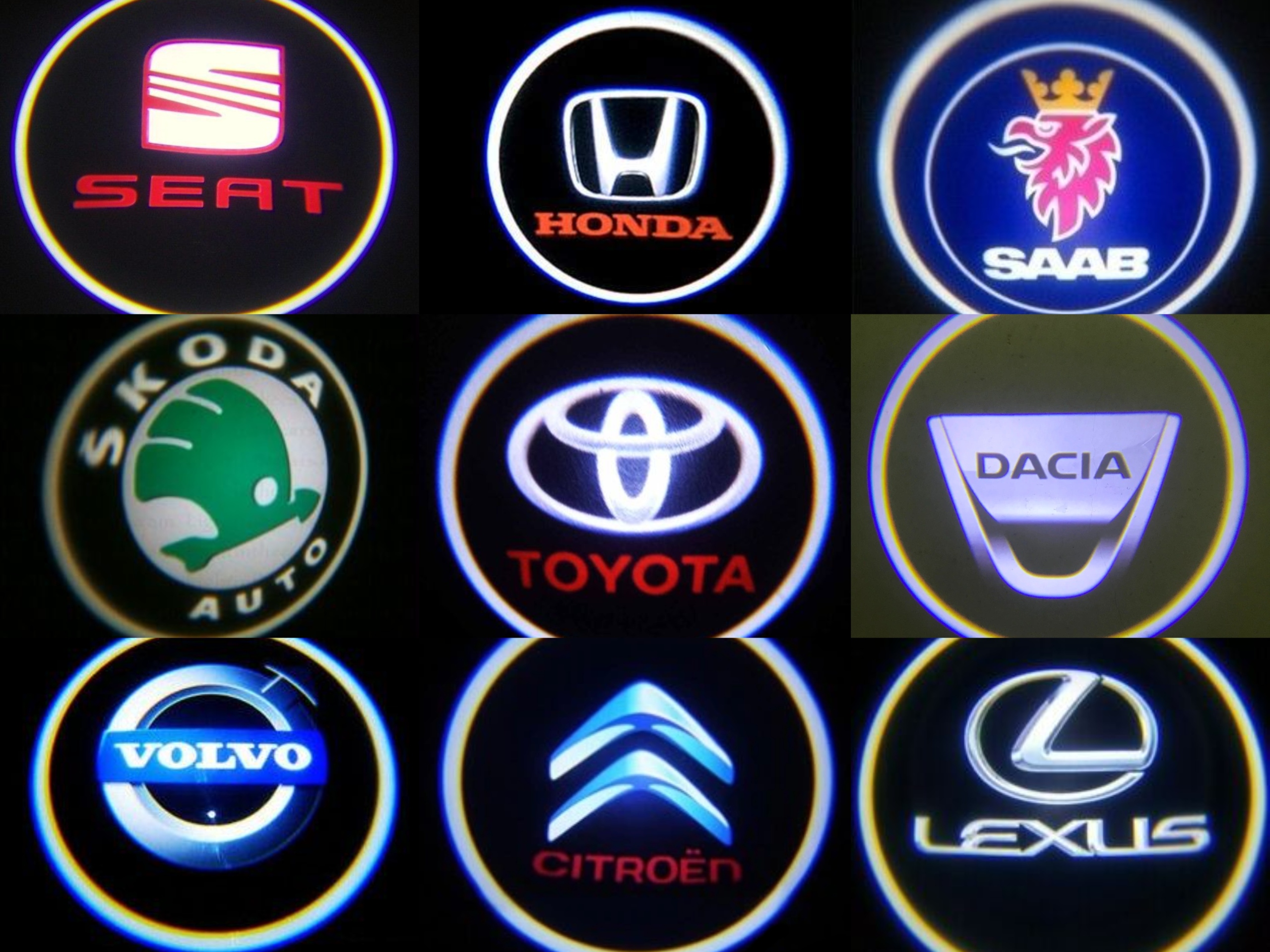 Прожектори використовуються для світлотехнічного оформлення автомобіля - зовнішнього візуального налаштування. Призначені для установки в якості дверного освітлення. Коли ви відкриваєте двері, на землі з’являється вітальний логотип марки автомобіля. Ідеальний, різкий і чіткий HD 3D-ефект відображуваного зображення завдяки використанню світлодіодів CREE.