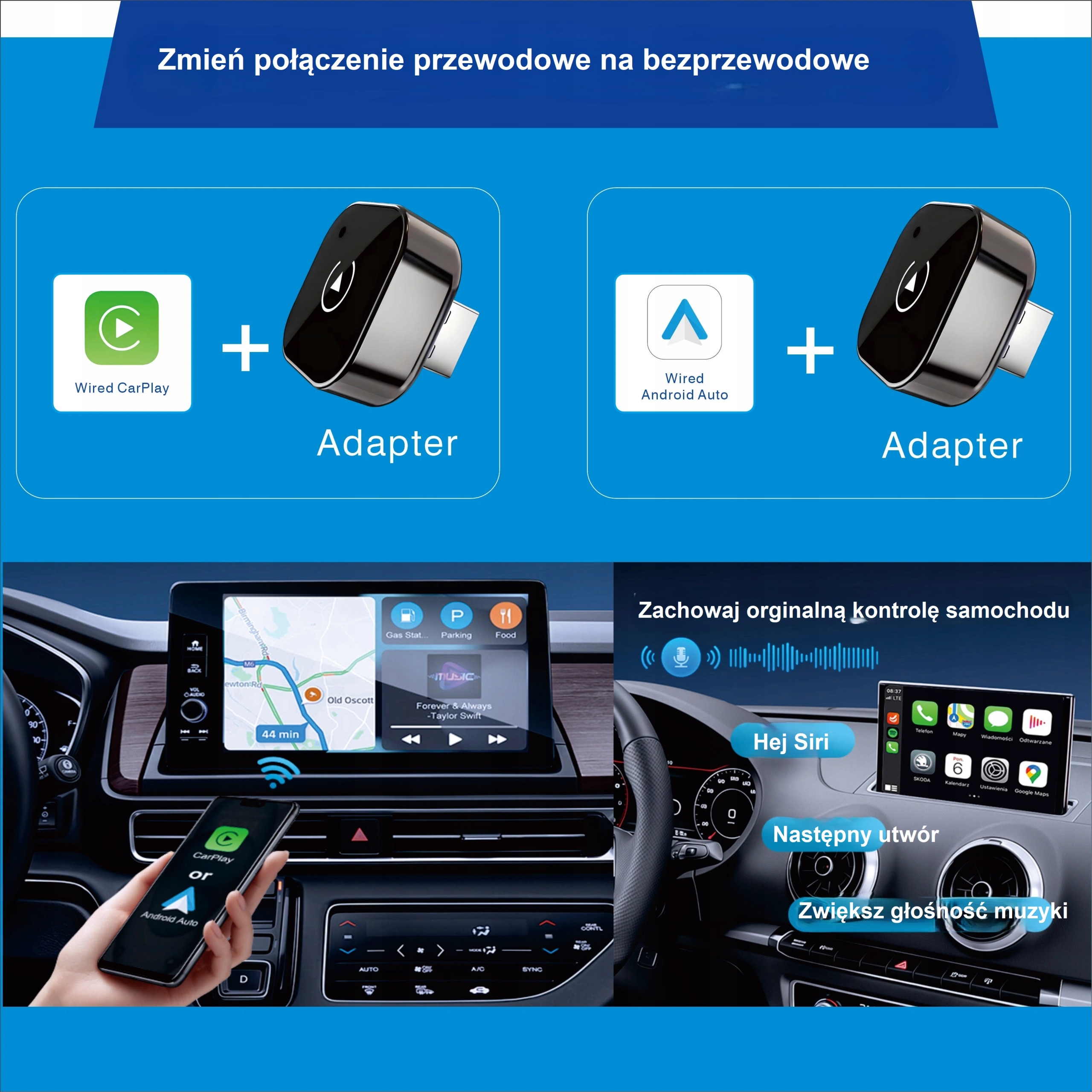 - ✅ Універсальна сумісність - працює з більшістю автомобілів, оснащених дротовим CarPlay і Android Auto