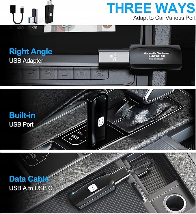 📏 Компактний і практичний: невеликий розмір і елегантний дизайн адаптера U2C-AIR дозволяють йому займати мало місця у вашому автомобілі, забезпечуючи повний бездротовий доступ до CarPlay. Ідеально підходить для різних марок автомобілів, забезпечуючи зручність і ефективність. 🚗🔧