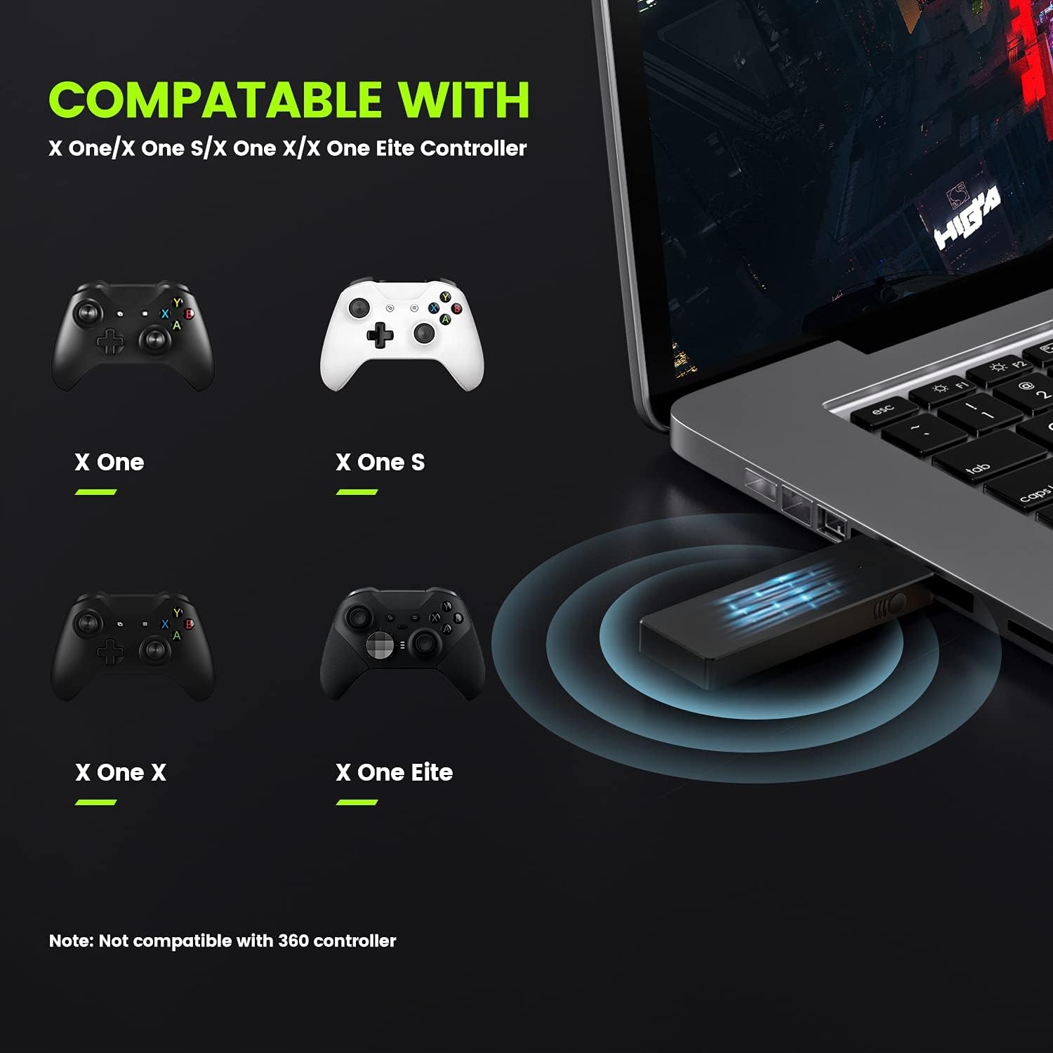 Для використання з бездротовим контролером X One на комп’ютерах і планшетах із Windows 7/8/8.1/10 із USB 2.0/3.0. Несумісний із контролерами Xbox 360. (Примітка: для першого використання вам може знадобитися завантажити драйвер)