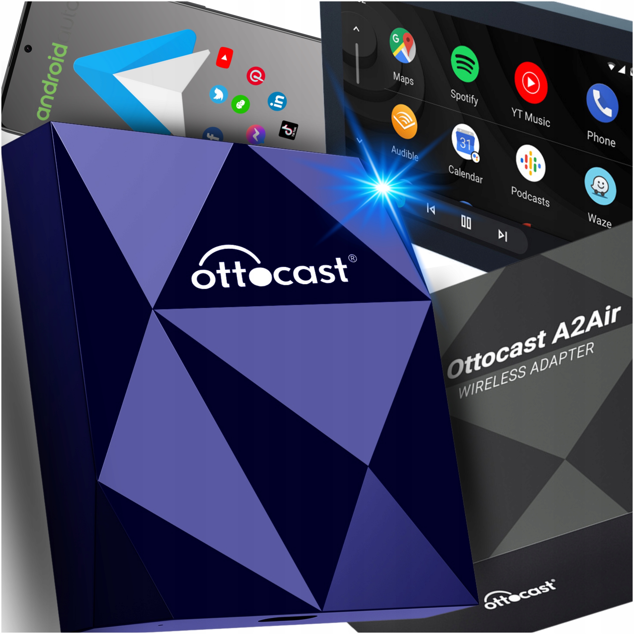✅ Ottocast A2Air – це вдосконалений бездротовий адаптер, який дозволить вам повністю використовувати функцію Android Auto у вашому автомобілі без підключення телефону за допомогою кабелю
