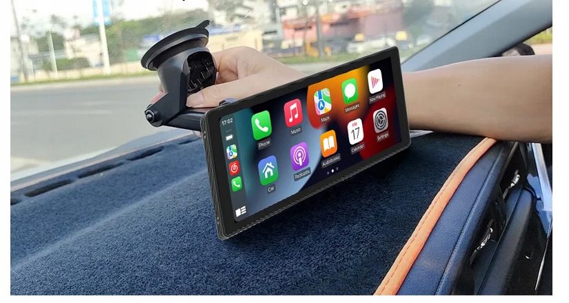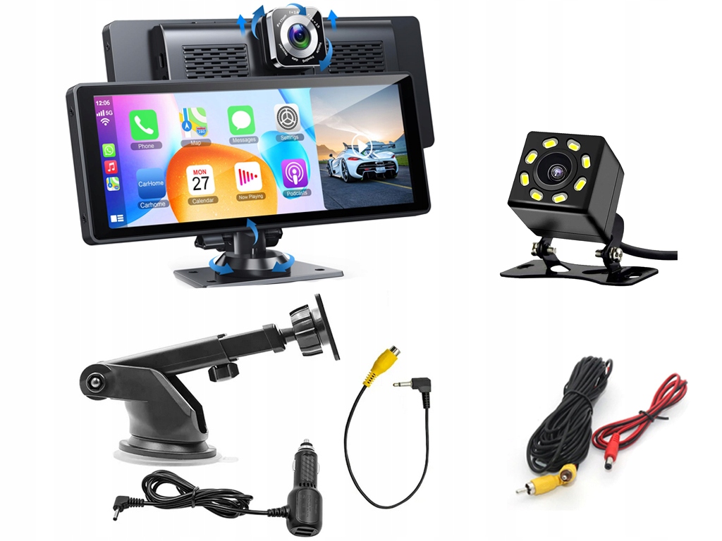 Універсальний автомобільний монітор із підтримкою Android Auto і CarPlayз діагоналлю 10,26 дюйма сенсорний екран на регульованому тримачі, завдяки якому ви можете легко регулювати положення монітора, також в комплекті є камера заднього виду зі світлодіодним підсвічуванням.