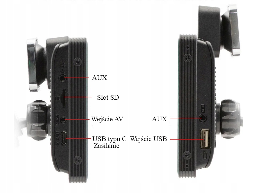 Монітор має повне Польське меню. На задній частині монітора знаходиться відеореєстратор з кутом огляду 120 градусів і роздільною здатністю 1280x720. об'єктив відеореєстратора регулюється, тому ми можемо легко встановити відповідне положення для запису >Кріпиться до приладової панелі тримач, з регульованим кутом нахилу