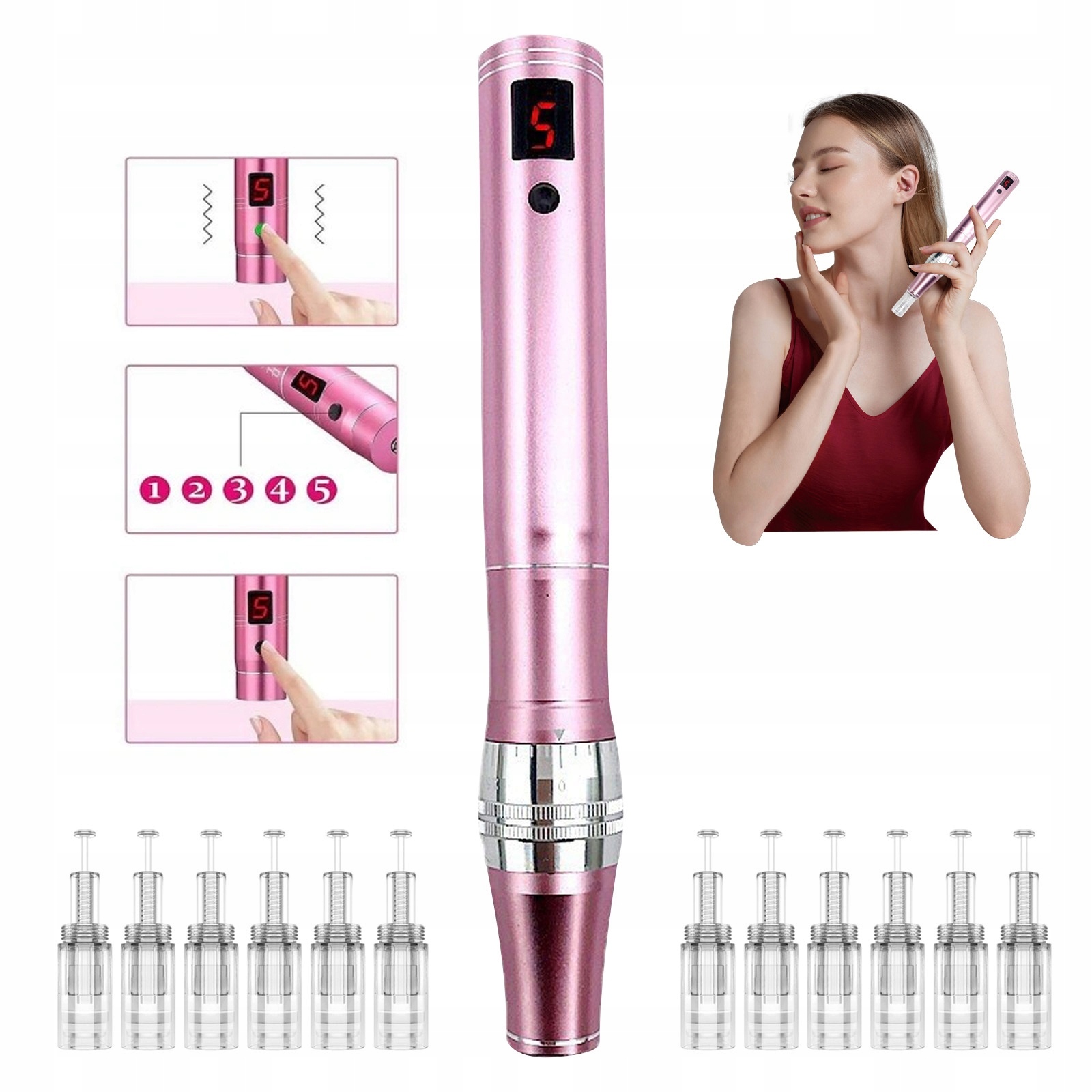 🎗️[Останній дизайн] Покращена мікроголка має РК-екран, на якому відображаються рівні швидкості. Цей електричний пристрій для мікроголок має розкішний дизайн, високоякісний корпус з нержавіючої сталі, тихий двигун, потужну батарею та регульовані голки від 0 до 2,0 мм. Кільце, що обертається в центрі голки, дозволяє регулювати довжину голки.